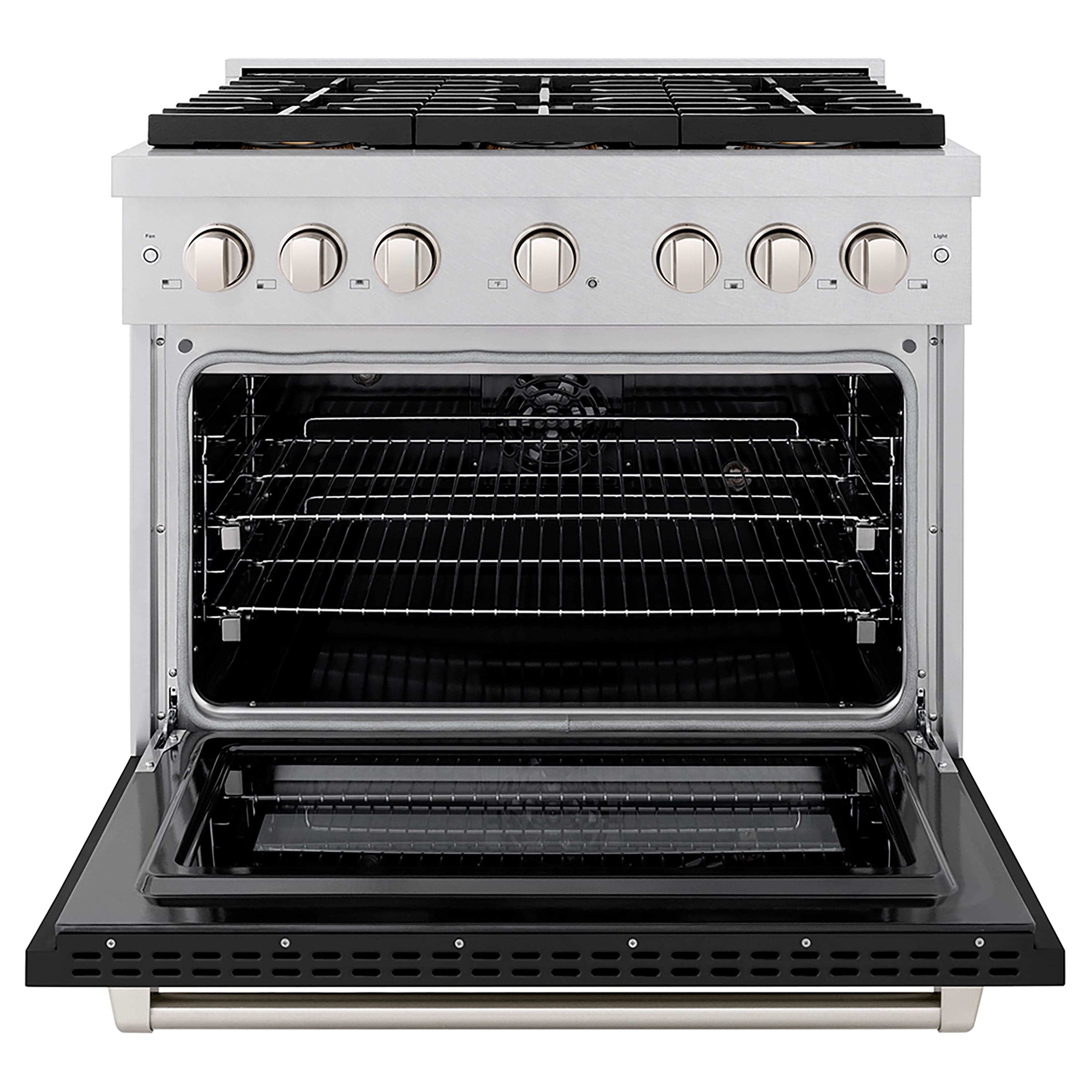 Luxury isn’t meant to be left desired—it’s meant to be attainable. The ZLINE 36 in. 5.2 cu. ft. Paramount Dual Fuel Range with 6 Burner DuoPro™ Cooktop and Electric Convection Oven in Satin Stainless Steel with Black Matte Door (PSDRS-BLM-36) features a high-powered gas cooktop with 6 hand-crafted Italian dual-ring brass burners and a versatile electric convection oven allowing you to master every meal. With ZLINE DuoPro™, every burner brings the performance you need—wherever you need it.