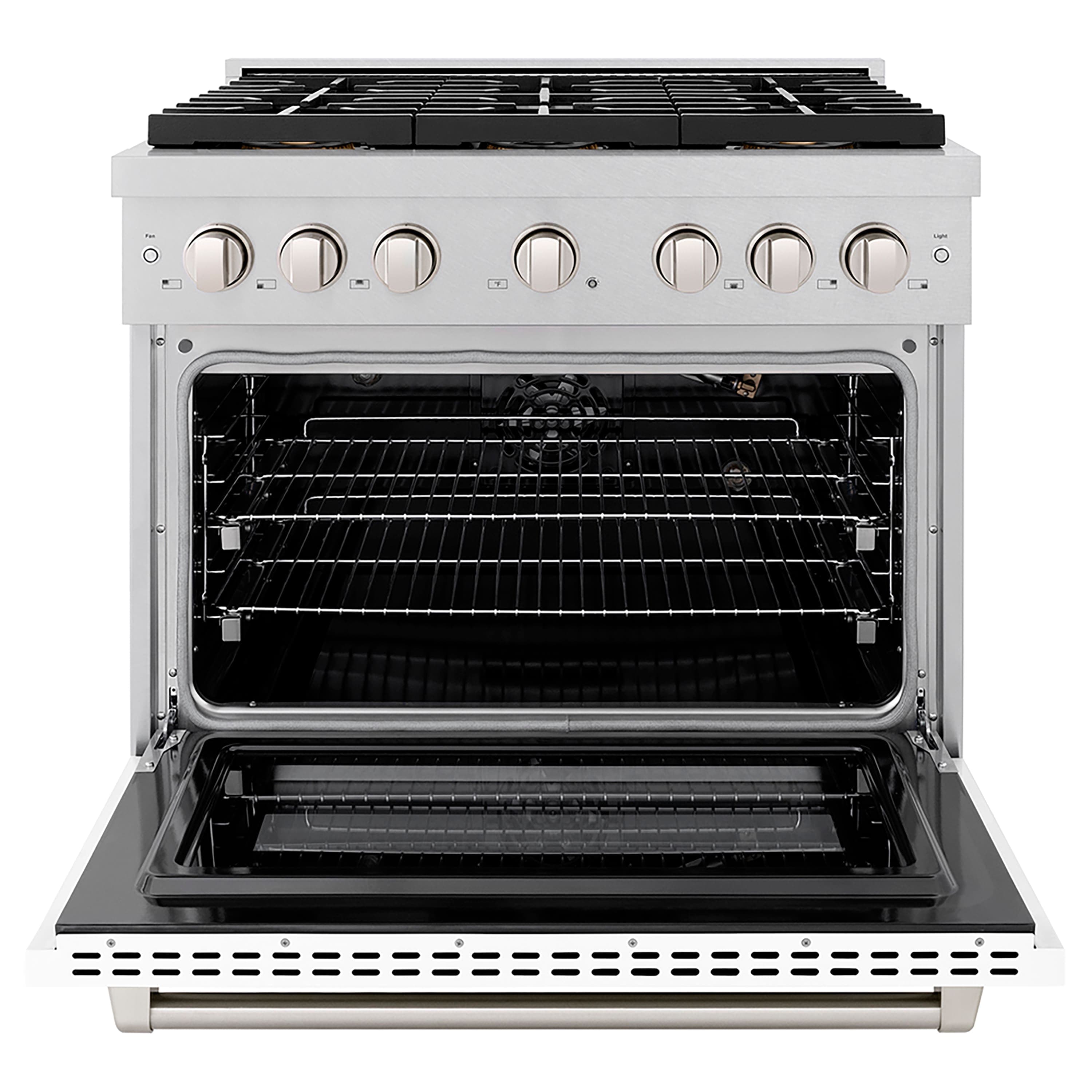 Luxury isn’t meant to be left desired—it’s meant to be attainable. The ZLINE 36 in. 5.2 cu. ft. Paramount Gas Range with 6 Burner DuoPro™ Cooktop and Convection Gas Oven in Satin Stainless Steel with White Matte Door (PSGRS-WM-36) features a high-powered gas cooktop with 6 hand-crafted Italian dual-ring brass burners and a versatile gas convection oven allowing you to master every meal. With ZLINE DuoPro™, every burner brings the performance you need—wherever you need it.