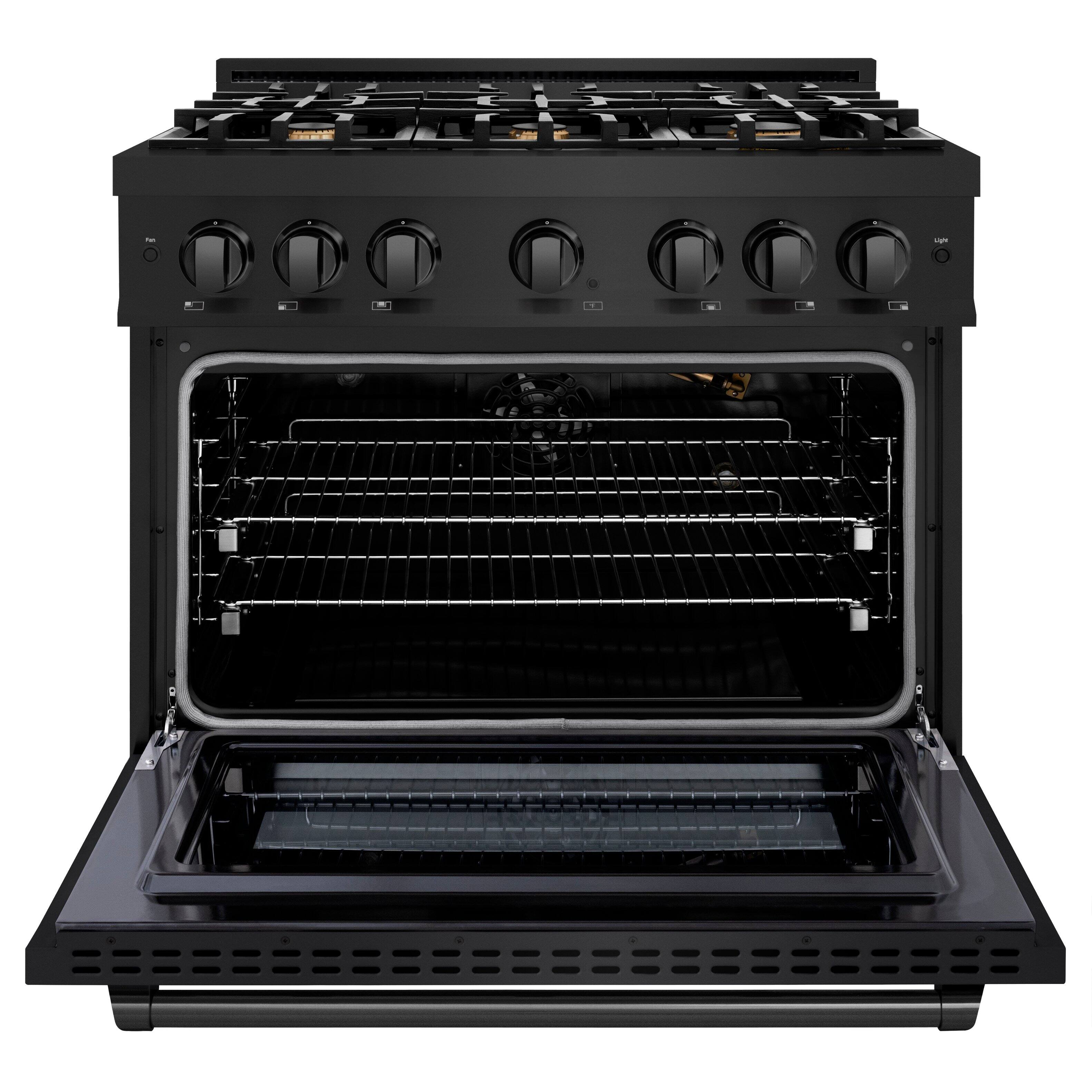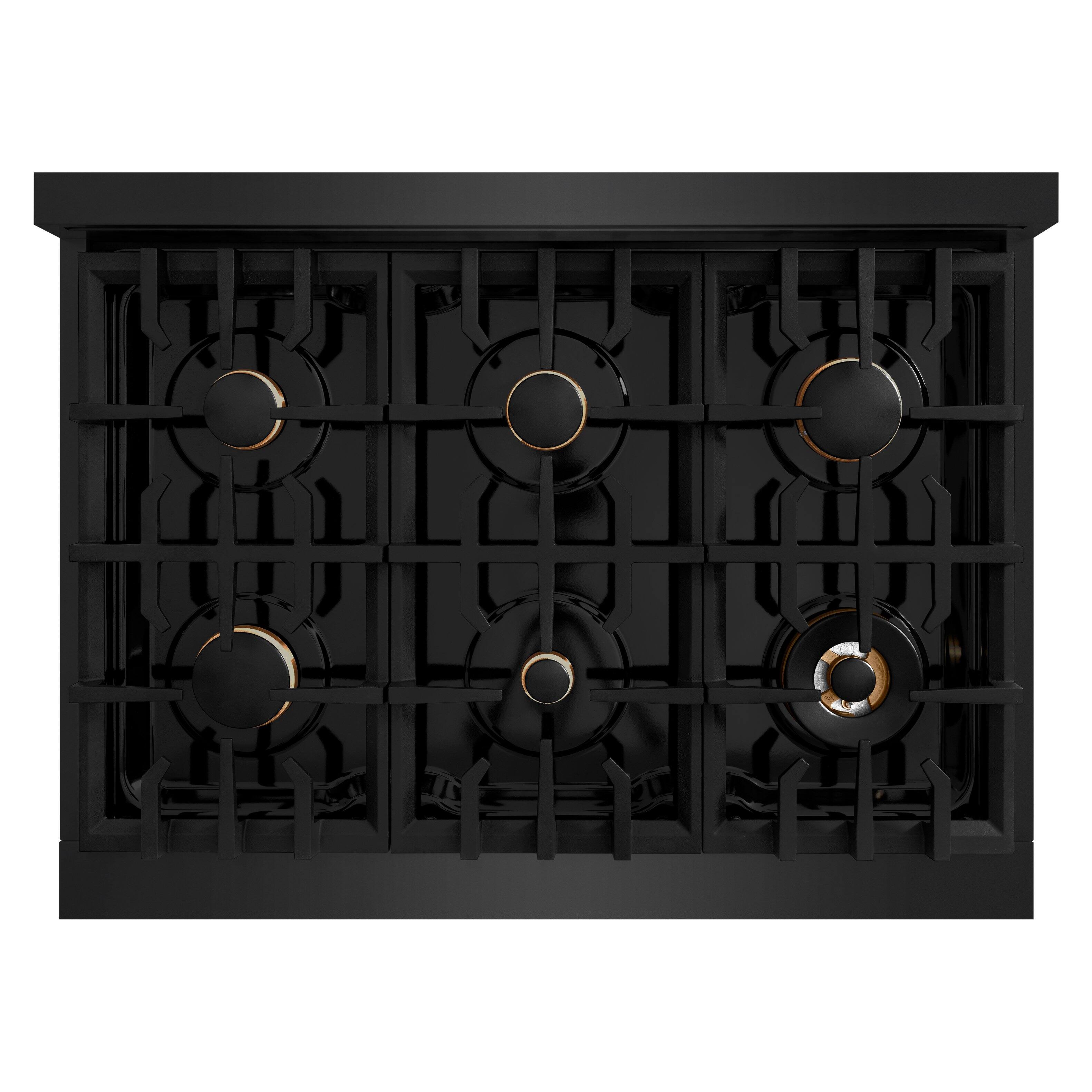 ZLINE - 36 in. 5.2 cu. ft. Freestanding Select Gas Range w/ Convection Oven in Black Stainless & 6 Brass Burners - Black Stainless Steel