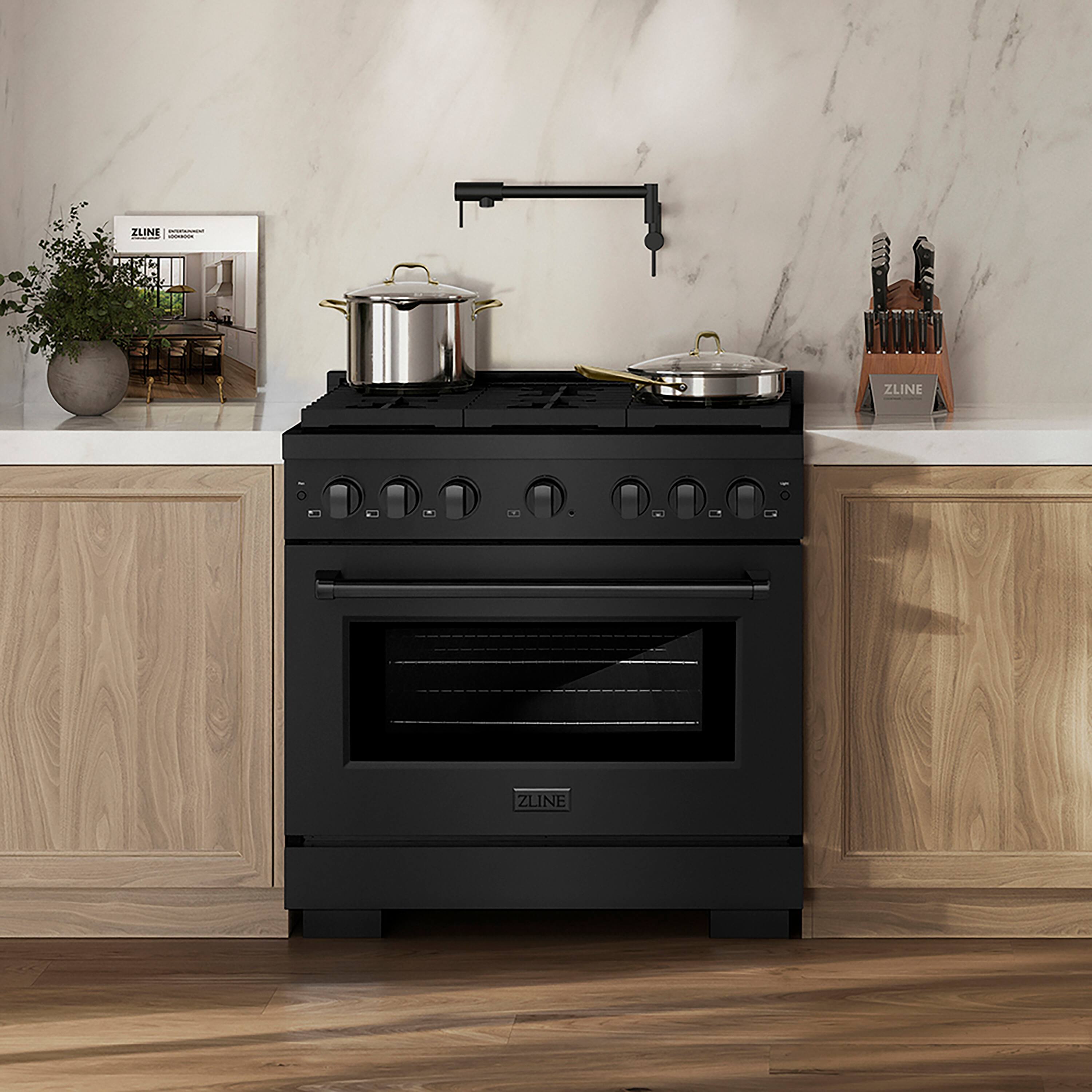 ZLINE - 36 in. Black Stainless Paramount Dual Fuel Range with 6 DuoPro Burners and Convection Oven (PSDRB-36) - Black Stainless Steel