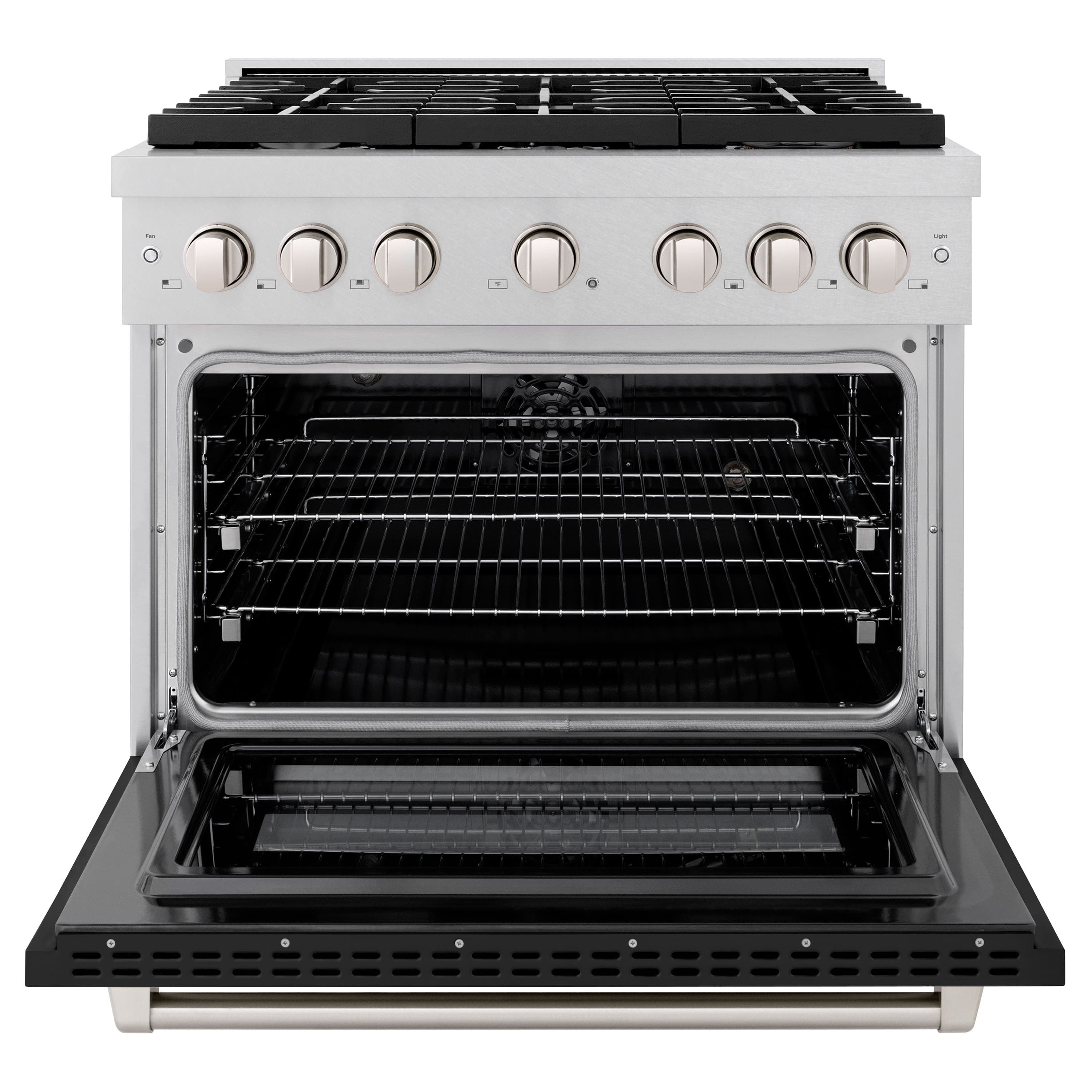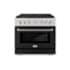 Luxury isn’t meant to be left desired — it’s meant to be attainable. The ZLINE 36 in. 5.2 cu. ft. Paramount Dual Fuel Range with 6 Burner Gas Cooktop and Electric Convection Oven in Satin Stainless Steel with Black Matte Door (SDRS-BLM-36) combines the versatility of a gas cooktop with 6 Italian-made auto-reignition burners, an electric convection oven with digital thermostat technology, enhanced cast iron grates, and a beautiful black matte door with a Horizon window design allowing you to master every meal. With a modern, timeless style and refined functionality, ZLINE Paramount Dual Fuel Ranges are masterfully crafted to deliver an elevated culinary experience.