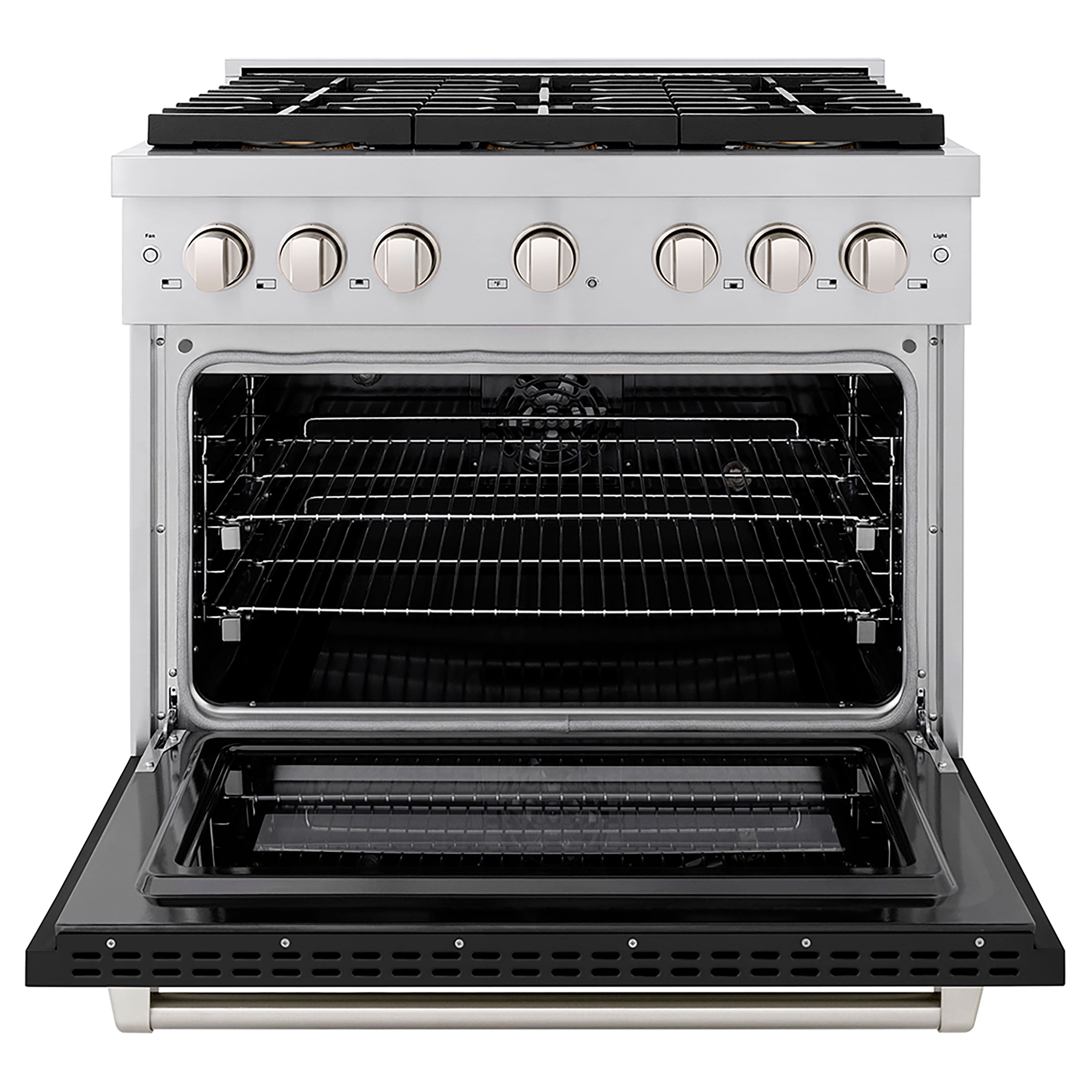 ZLINE - 36 in. Paramount Dual Fuel Range with 6 Burner DuoPro Cooktop & Convection Oven w/ Black Door (PSDR-BLM-36) - Stainless Steel with Black Matte Door