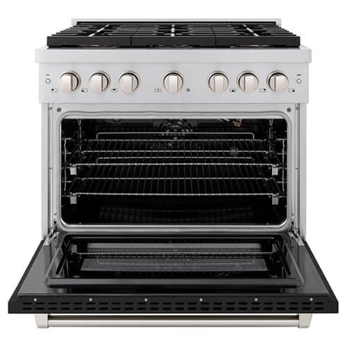 ZLINE - 36 in. Paramount Gas Range with 6 Burner DuoPro Cooktop and Gas Oven with Black Matte Door (PSGR-BLM-36) - Stainless Steel with Black Matte Door