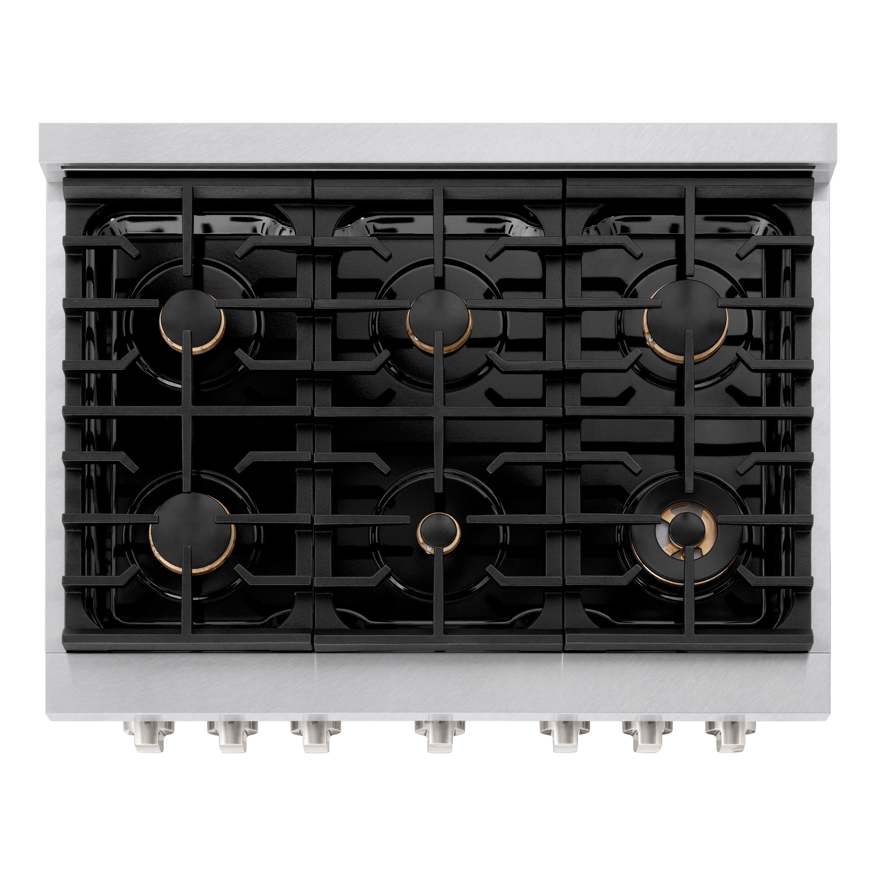 ZLINE - 36 in. Paramount Satin Stainless Gas Range w/ Convection Oven & 6 Brass Burners (SGRS-BR-36) - Stainless Steel