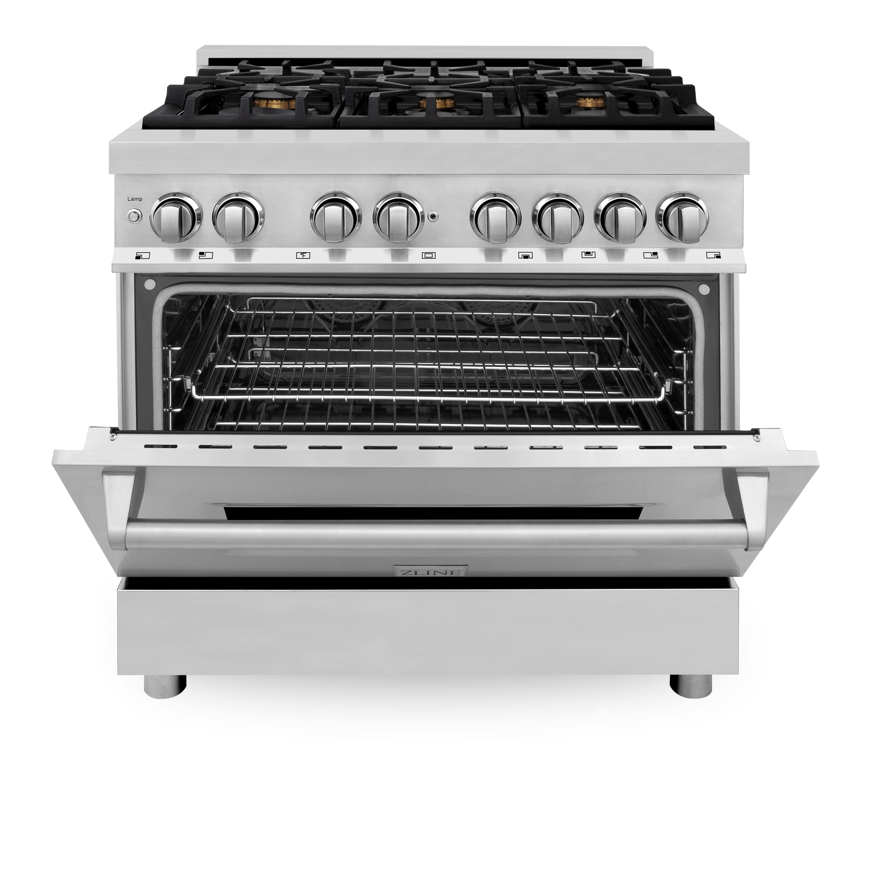 ZLINE - 36" Legacy Dual Fuel Range w/ Gas Cooktop & Electric Oven w/ 6 Brass Burners (RA-BR-36) - Stainless Steel/Brass Burners