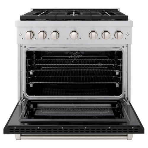 ZLINE - 36" Paramount Dual Fuel Range with 6 Burners and Convection Oven (SDR-BLM-36) - Satin Steel/Black Matte