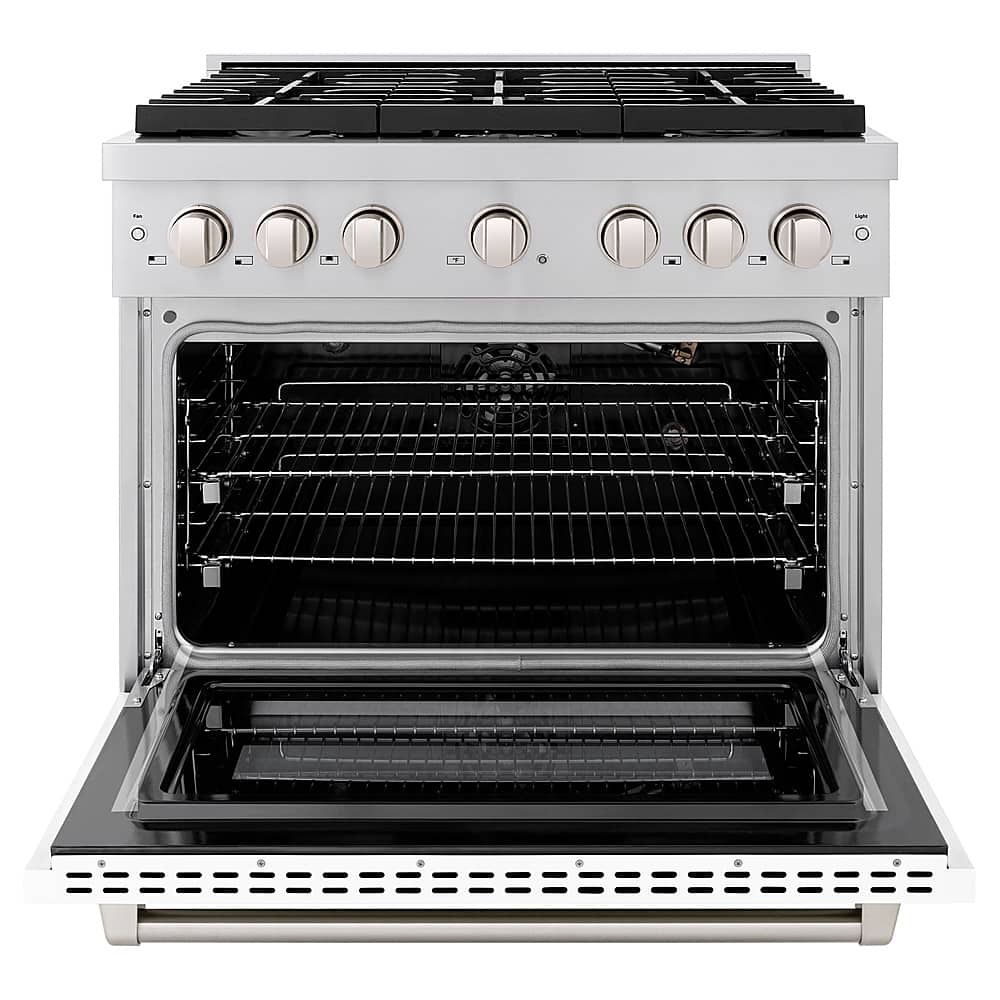 Luxury isn’t meant to be desired - it’s meant to be attainable. The ZLINE 36 in. 5.2 cu. ft. Paramount Gas Range with 6 Burner Cooktop and Convection Gas Oven in Stainless Steel with White Matte Door (SGR-WM-36) features a versatile gas cooktop with 6 Italian-made auto-reignition burners, a high-performing gas convection oven, enhanced cast iron grates, and a beautiful white matte door with a Horizon window design allowing you to master every meal. With a modern, timeless style and refined functionality, ZLINE Paramount Gas Ranges are masterfully crafted to deliver an elevated culinary experience.