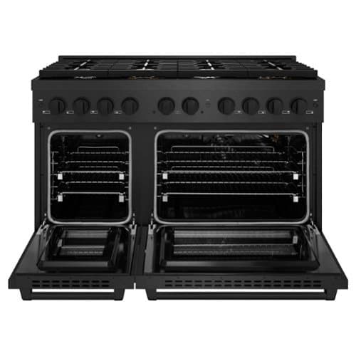 Luxury isn’t meant to be left desired—it’s meant to be attainable. The ZLINE 48 in. 6.7 cu. ft. Paramount Double Oven Gas Range with 8 Burner Cooktop in Black Satin Stainless Steel (SGRBS-48) features a versatile gas cooktop with 8 Italian-made auto-reignition burners, a large high-performing gas convection oven, a small baking oven, enhanced cast iron grates, and Horizon oven door window designs allowing you to master every meal. With a modern, timeless style and refined functionality, ZLINE Paramount Gas Ranges are masterfully crafted to deliver an elevated culinary experience.