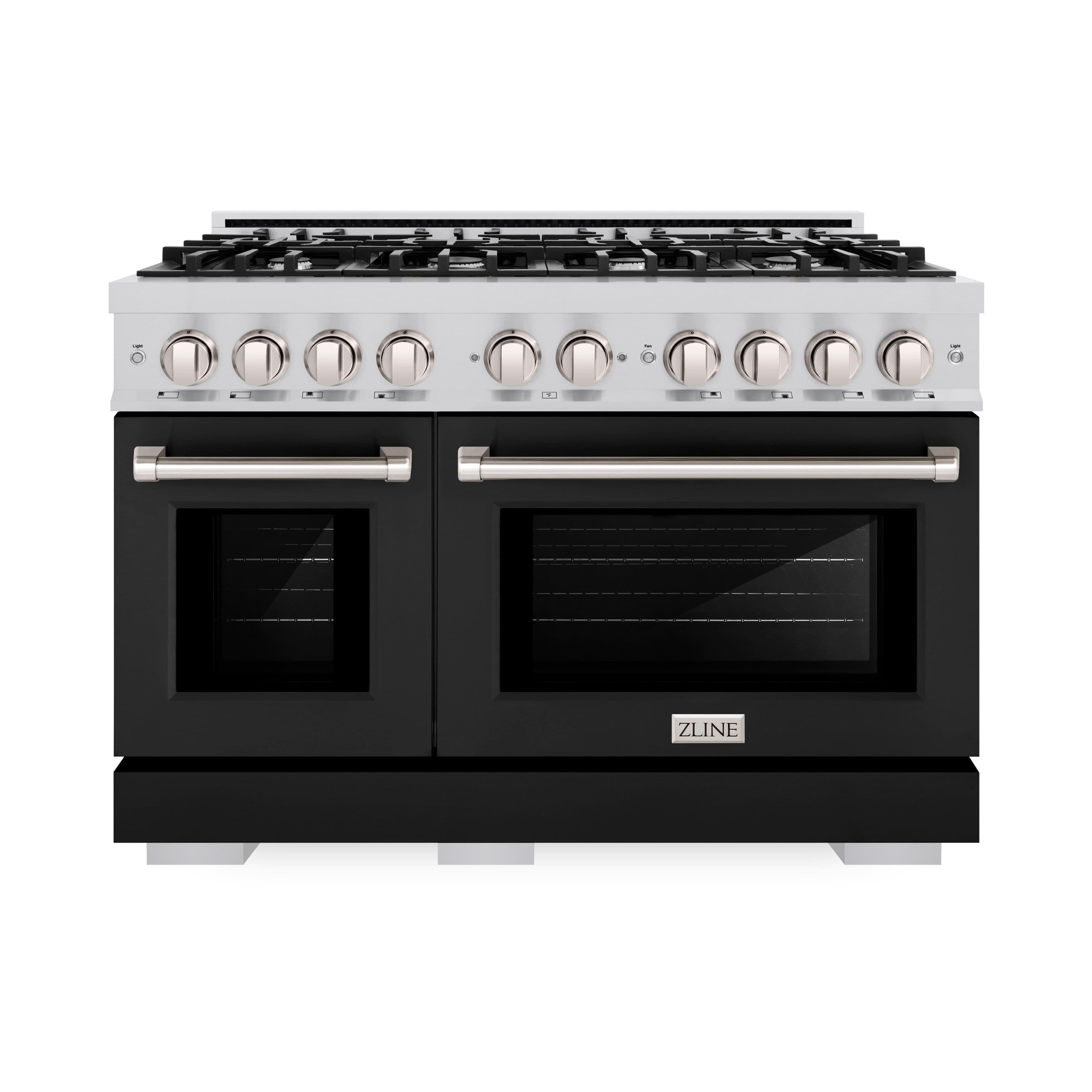 ZLINE - 48 in. 6.7 cu. ft. Freestanding Select Double Oven Gas Range w/ 8 Burner Cooktop & Black Matte Doors (HGR-BLM-48) - Stainless Steel