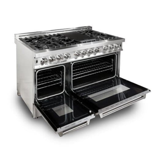 Luxury isn’t meant to be left desired—it’s meant to be attainable. The ZLINE 48 in. 6.0 cu. ft. Legacy Dual Fuel Range with 7 Burner Gas Cooktop and 2 Electric Ovens in Stainless Steel with Satin Stainless Steel Doors (RA-SN-48) pairs a powerful gas cooktop with 7 Italian-crafted burners with a large electric convection oven, a small bake and broil oven, and beautiful Satin stainless steel doors with Landscape window designs. With innovative features designed to enhance your kitchen’s capability, ZLINE Legacy Dual Fuel Ranges provide a professional culinary experience by pairing unmatched performance with timeless style.