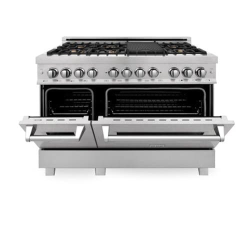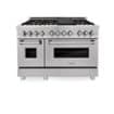 ZLINE - 48 in. Legacy Dual Fuel Range with 6 Brass Burners (RAS-SN-BR-48) - Satin Stainless Steel