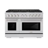 ZLINE - 48 in. Paramount Double Oven Dual Fuel Satin Steel Range w/ 8 Brass Burners (SDRS-BR-48) - Stainless Steel