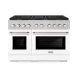 Luxury isn’t meant to be left desired — it’s meant to be attainable. The ZLINE 48 in. 6.7 cu. ft. Paramount Double Oven Dual Fuel Range with 8 Burner Gas Cooktop in Satin Stainless Steel with White Matte Doors (SDRS-WM-48) combines the versatility of a gas cooktop with 8 Italian-made auto-reignition burners, a large high-performing electric convection oven and a small bake-and-broil oven with digital thermostat technology, enhanced cast iron grates, and beautiful white matte doors with Horizon window designs allowing you to master every meal. With a modern, timeless style and refined functionality, ZLINE Paramount Dual Fuel Ranges are masterfully crafted to deliver an elevated culinary experience.