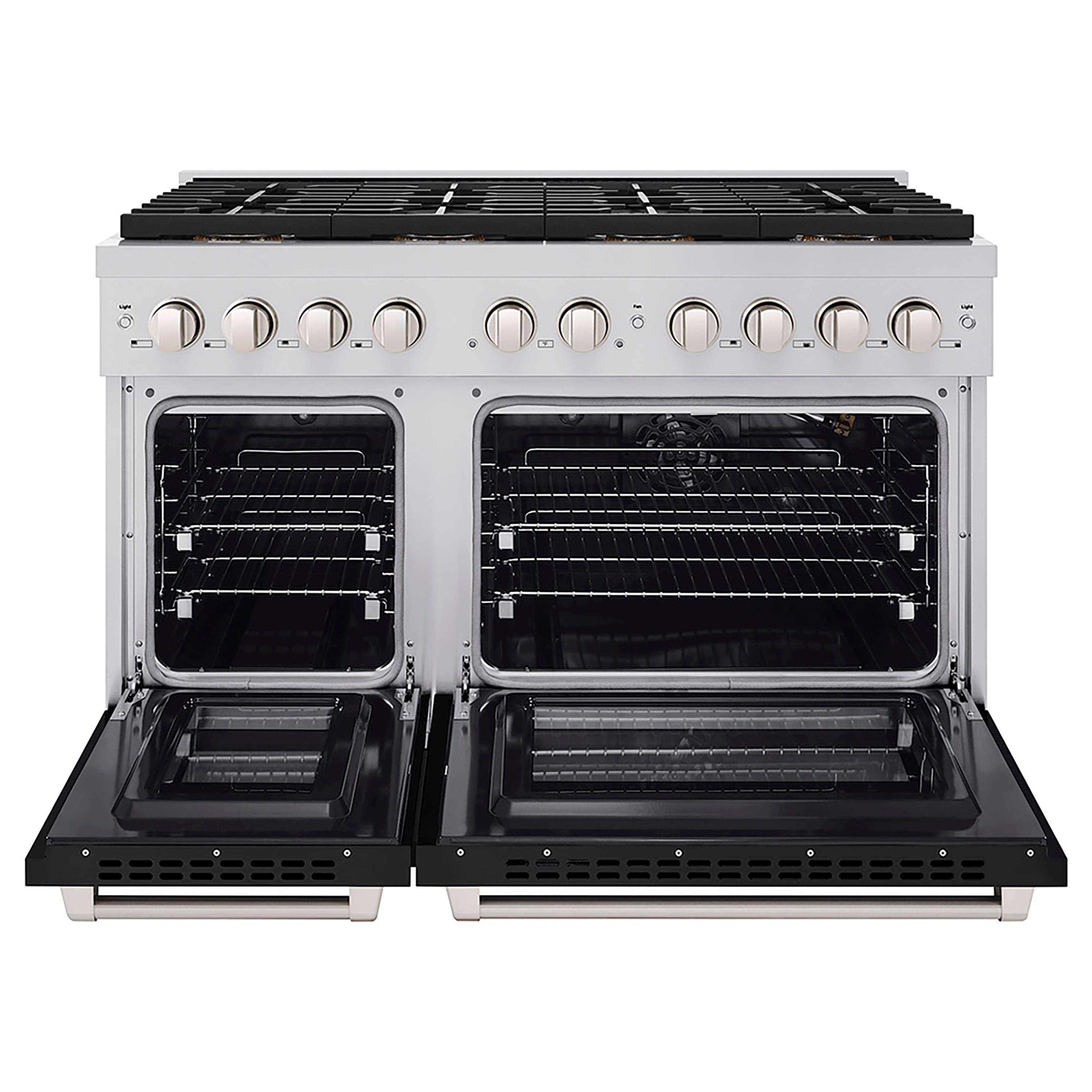 ZLINE - 48 in. Paramount Gas Range with 8 Burner DuoPro Cooktop and Dual Ovens with Black Matte Doors (PSGR-BLM-48) - Stainless Steel with Black Matte Door