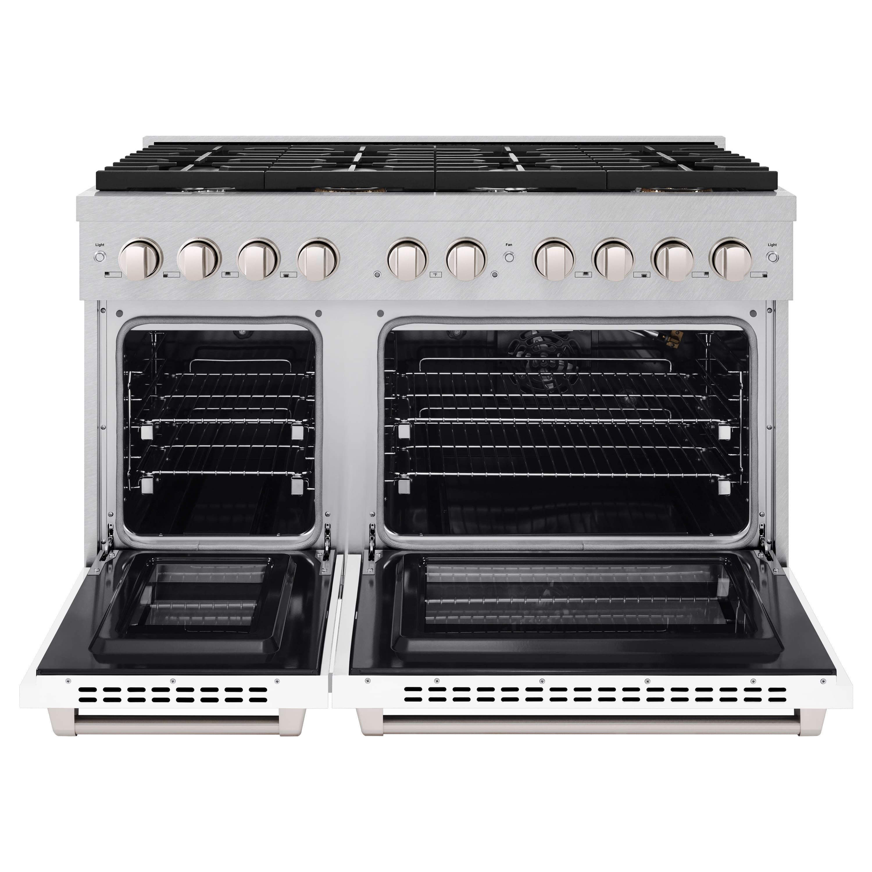 ZLINE - 48 in. Paramount Satin Double Oven Gas Range with 8 Burners (SGRS-WM-48) - Satin Steel/White Matte