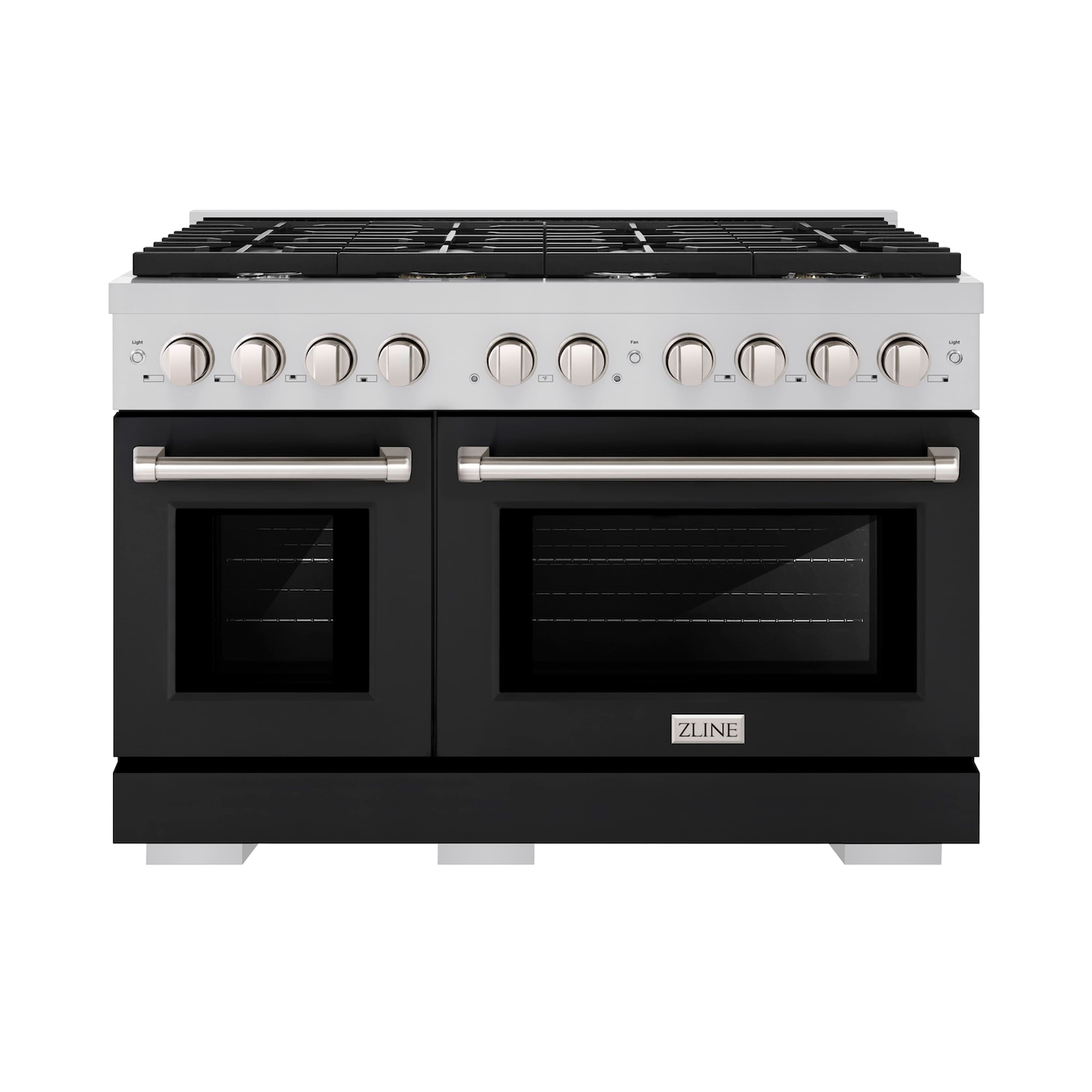 ZLINE - 48" Paramount Double Oven Dual Fuel Range with 8 Burners (SDR-BLM-48) - Satin Steel/Black Matte
