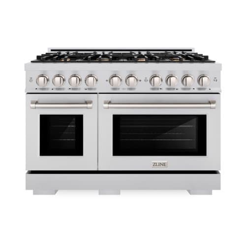 ZLINE - 48" Select Double Oven Dual Fuel Range in Stainless Steel w/ 8 Brass Burners (HDR-BR-48) - Stainless Steel