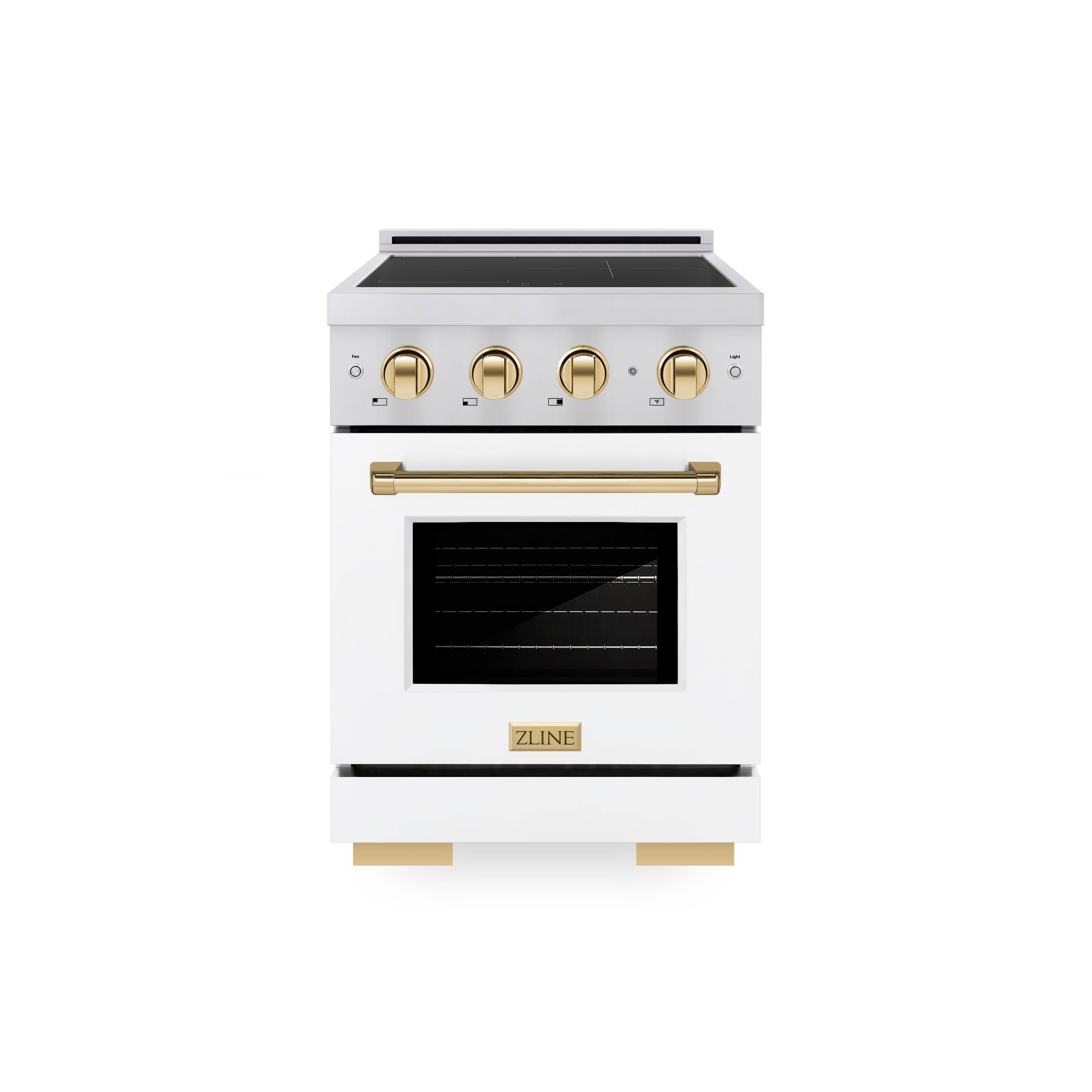 ZLINE - Autograph 24 in. 3.2 cu. ft. Paramount Freestanding Induction Range with 3 Burners and Gold Accents with White Door - White Matte