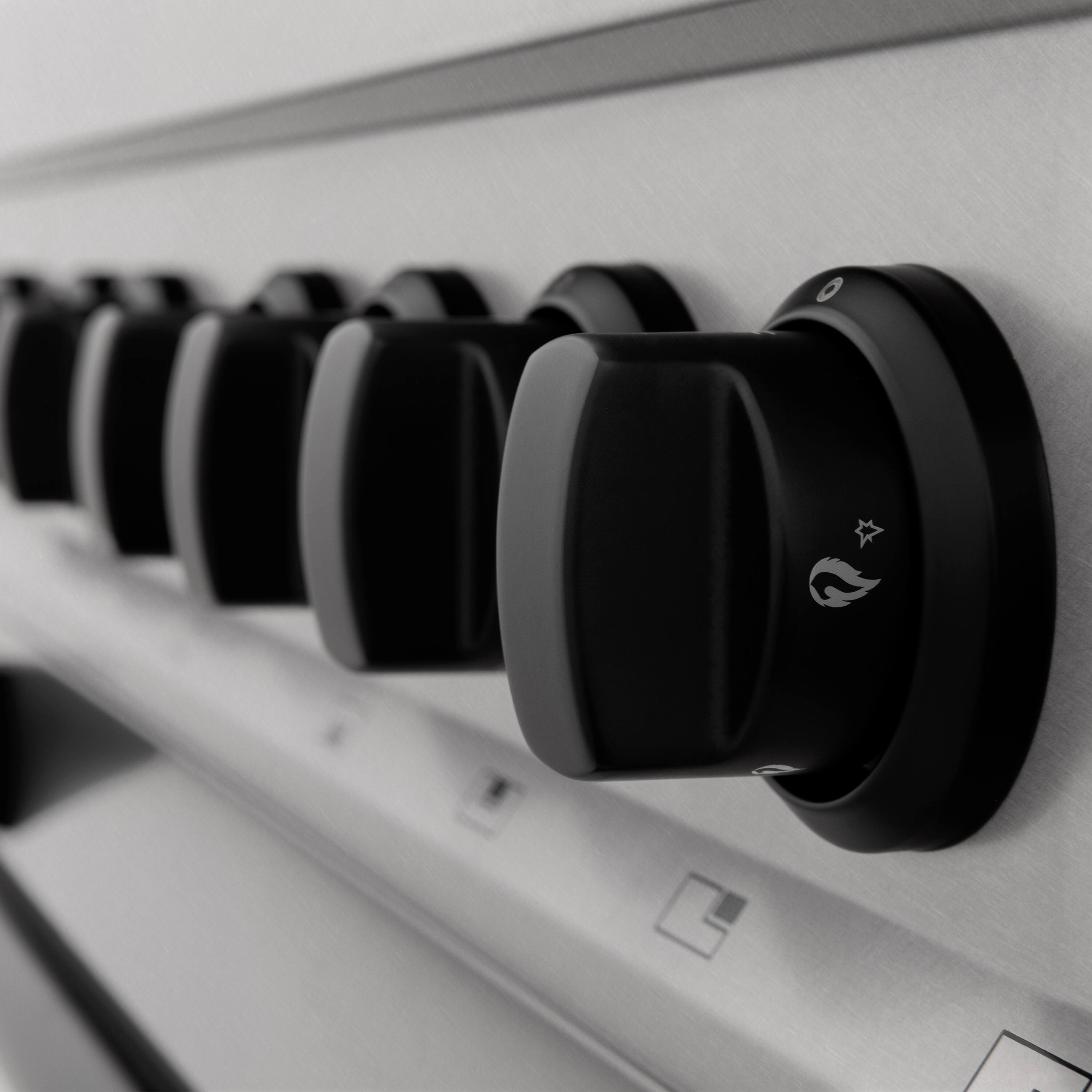 Luxury isn’t meant to be left desired — it’s meant to be attainable. The ZLINE Autograph Edition 24 in. 2.8 cu. ft. Legacy Dual Fuel Range with 4 Burner Gas Cooktop and Electric Convection Oven in Satin Stainless Steel with White Matte Door and Matte Black Accents (RASZ-WM-24-MB) pairs a powerful gas cooktop with 4 Italian-crafted burners, an electric convection oven, a beautiful white matte door with a Landscape window design, and elegant matte black knobs and handle. With innovative features designed to enhance your kitchen’s capability, ZLINE Legacy Dual Fuel Ranges provide a professional culinary experience by pairing unmatched performance with timeless style.