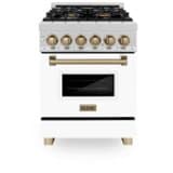 ZLINE - Autograph 24 in. Legacy Dual Fuel Range in Satin Steel w/ White & Bronze Accents (RASZ-WM-24-CB) - White Matte