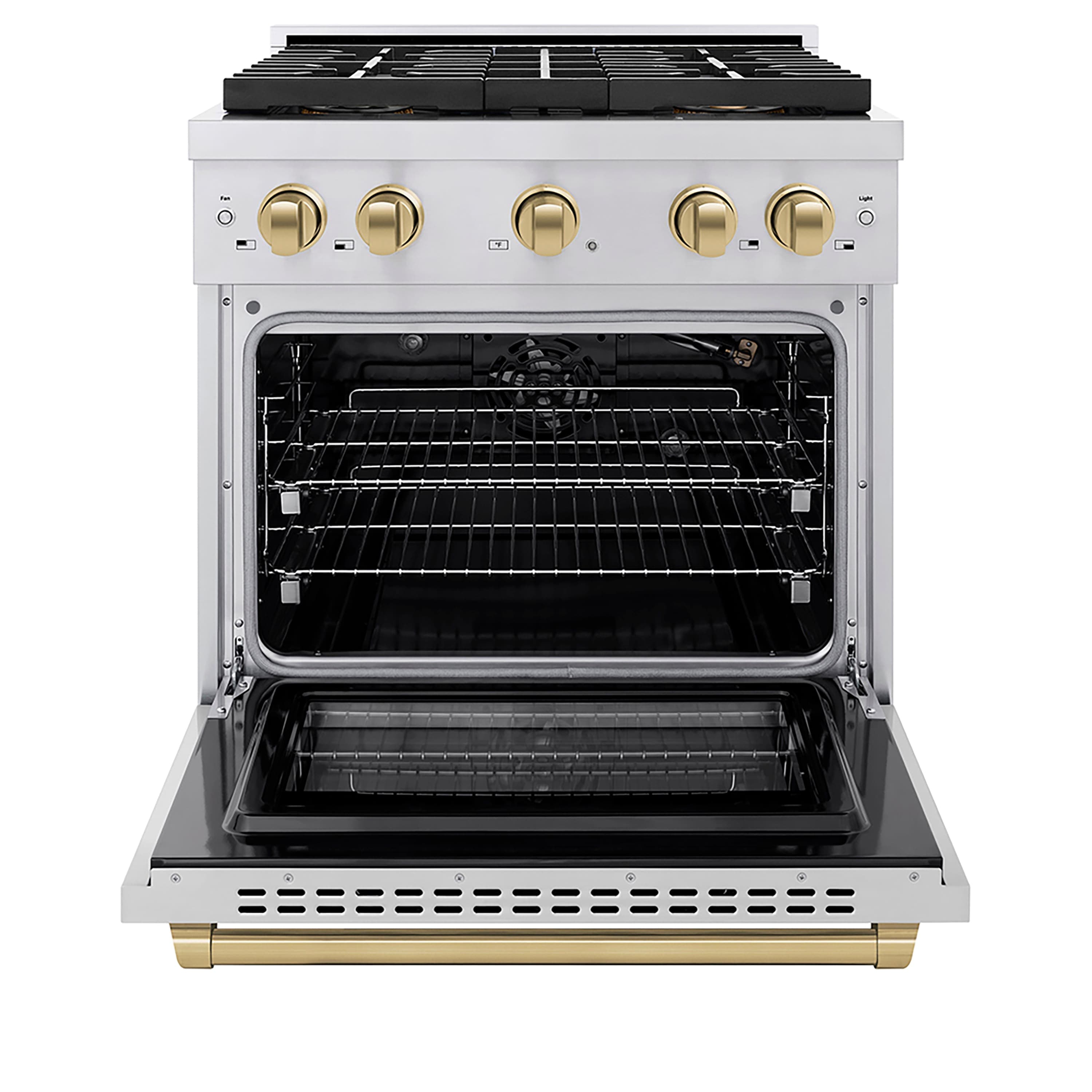 Luxury isn’t meant to be left desired—it’s meant to be attainable. The ZLINE Autograph Edition 30 in. 4.2 cu. ft. Paramount Gas Range with 4 Burner DuoPro™ Cooktop and Convection Gas Oven in Stainless Steel with Champagne Bronze Accents (PSGRZ-30-CB) features a high-powered gas cooktop with 4 hand-crafted Italian dual-ring brass burners and a versatile gas convection oven allowing you to master every meal. With ZLINE DuoPro™, every burner brings the performance you need—wherever you need it.
