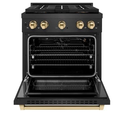 Luxury isn’t meant to be left desired—it’s meant to be attainable. The ZLINE Autograph Edition 30 in. 4.2 cu. ft. Paramount Gas Range with 4 Burner DuoPro™ Cooktop and Convection Gas Oven in Black Satin Stainless Steel and Polished Gold Accents (PSGRBSZ-30-G) features a high-powered gas cooktop with 4 hand-crafted Italian dual-ring brass burners and a versatile gas convection oven allowing you to master every meal. With ZLINE DuoPro™, every burner brings the performance you need—wherever you need it.