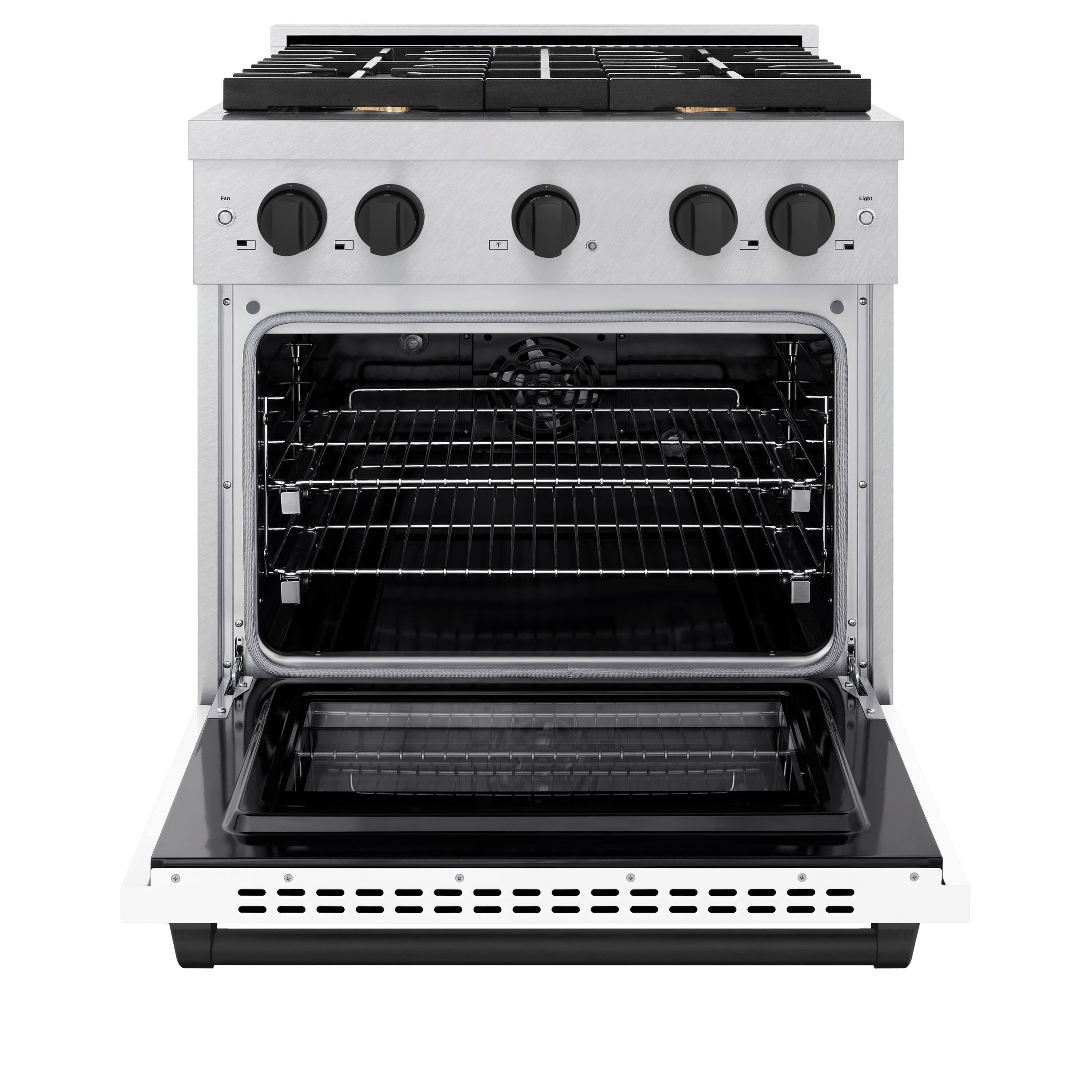 Luxury isn’t meant to be left desired — it’s meant to be attainable. The ZLINE Autograph Edition 30 in. 4.2 cu. ft. Paramount Dual Fuel Range with 4 Burner Gas Cooktop and Electric Convection Oven in Satin Stainless Steel with White Matte Door and Matte Black Accents (SDRSZ-WM-30-MB) combines the versatility of a gas cooktop with 4 Italian-made auto-reignition burners, an electric convection oven with digital thermostat technology, enhanced cast iron grates, a beautiful white matte door with a Horizon window design, and elegant matte black knobs and handle allowing you to master every meal. With a modern, timeless style and refined functionality, ZLINE Paramount Dual Fuel Ranges are masterfully crafted to deliver an elevated culinary experience.