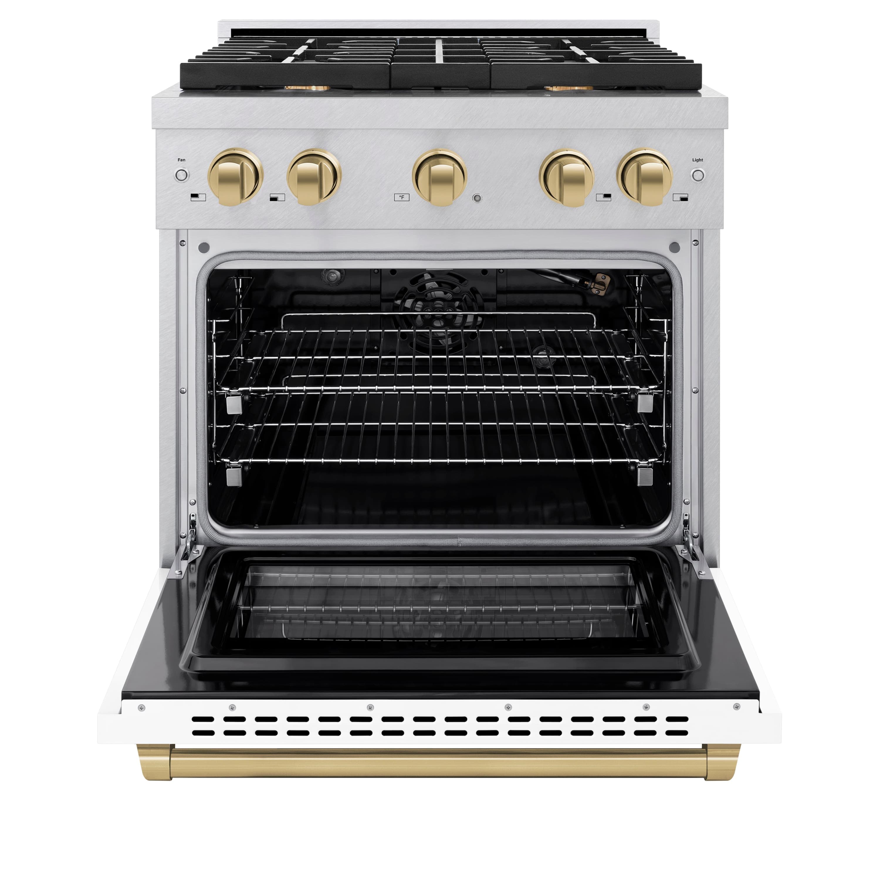 Luxury isn’t meant to be left desired — it’s meant to be attainable. The ZLINE ZLINE Autograph Edition 30 in. 4.2 cu. ft. Paramount Gas Range with 4 Burner Cooktop and Convection Gas Oven in Satin Stainless Steel with White Matte Door and Champagne Bronze Accents (SGRSZ-WM-30-CB) features a versatile gas cooktop with 4 Italian-made auto-reignition burners, a high-performing gas convection oven, enhanced cast iron grates, a beautiful white matte door with a Horizon window design, and elegant champagne bronze knobs and handle allowing you to master every meal. With a modern, timeless style and refined functionality, ZLINE Paramount Gas Ranges are masterfully crafted to deliver an elevated culinary experience.
