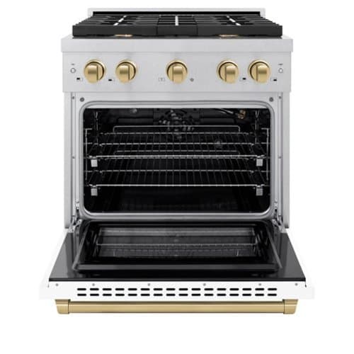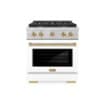 ZLINE - Autograph 30 in. Paramount Satin Steel Gas Range with Bronze Accents (SGRSZ-WM-30-CB) - White Matte