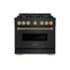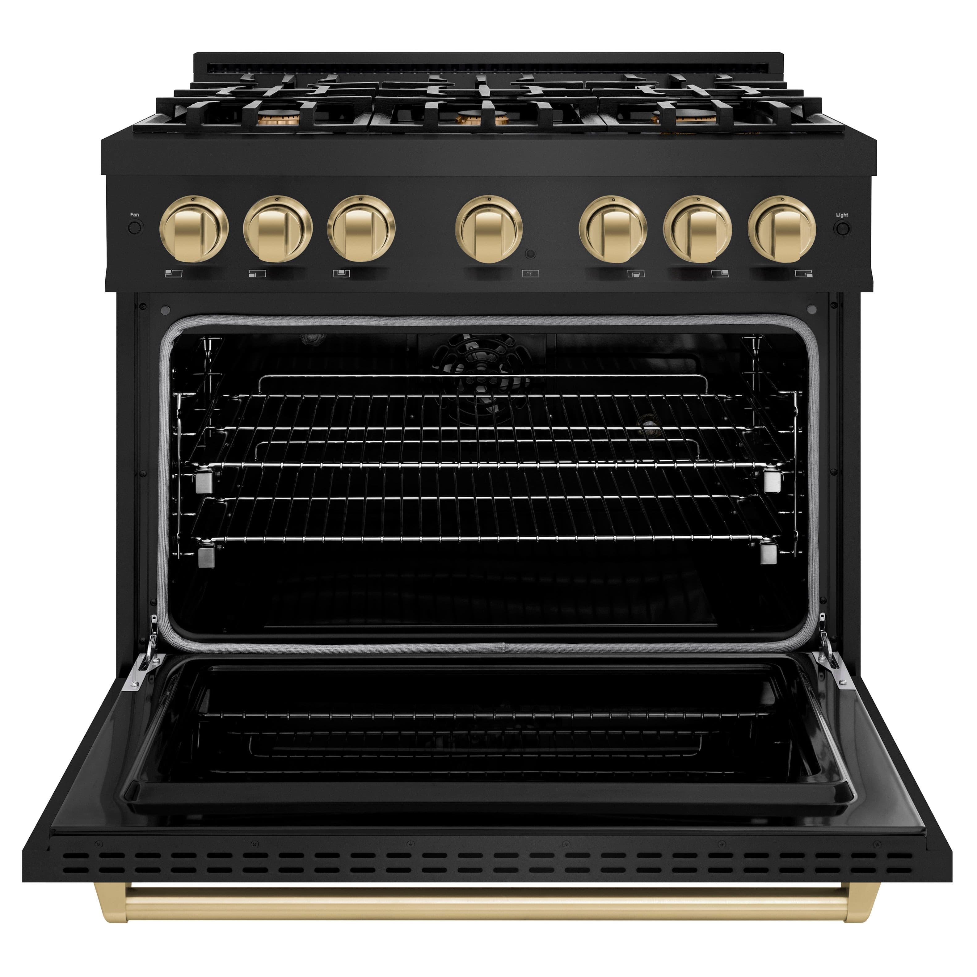 ZLINE - Autograph 36" Classic Dual Fuel Black Stainless Range w/ Bronze Accents (CDRBZ-36-CB) - Black Stainless Steel
