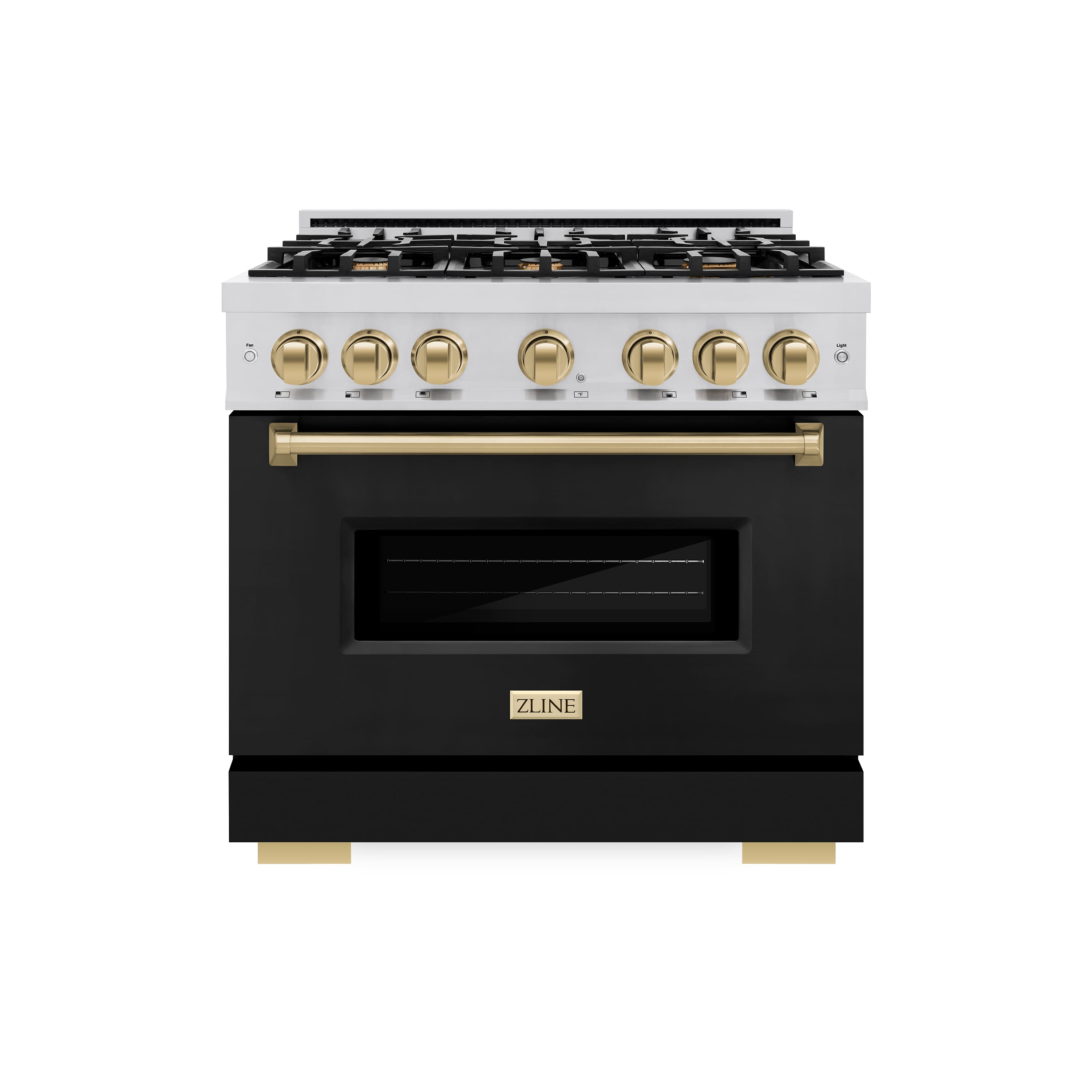Luxury isn’t meant to be desired - it’s meant to be attainable. The ZLINE Autograph Edition 36 in. 5.2 cu. ft. Classic Gas Range with 6 Burner Cooktop and Convection Gas Oven in Stainless Steel with Black Matte Door and Champagne Bronze Accents (CGRZ-BLM-36-CB) combines the elegance of a hand-finished porcelain gas cooktop with 6 Italian-made auto-reignition burners, a gas convection oven with an energy-efficient cooling fan to ensure quiet operation, a beautiful black matte door with a Landscape window design, and stunning champagne bronze knobs and handle allowing you to master every meal. With a modern, timeless style and refined functionality, ZLINE Classic Gas Ranges are masterfully crafted to deliver an elevated culinary experience.