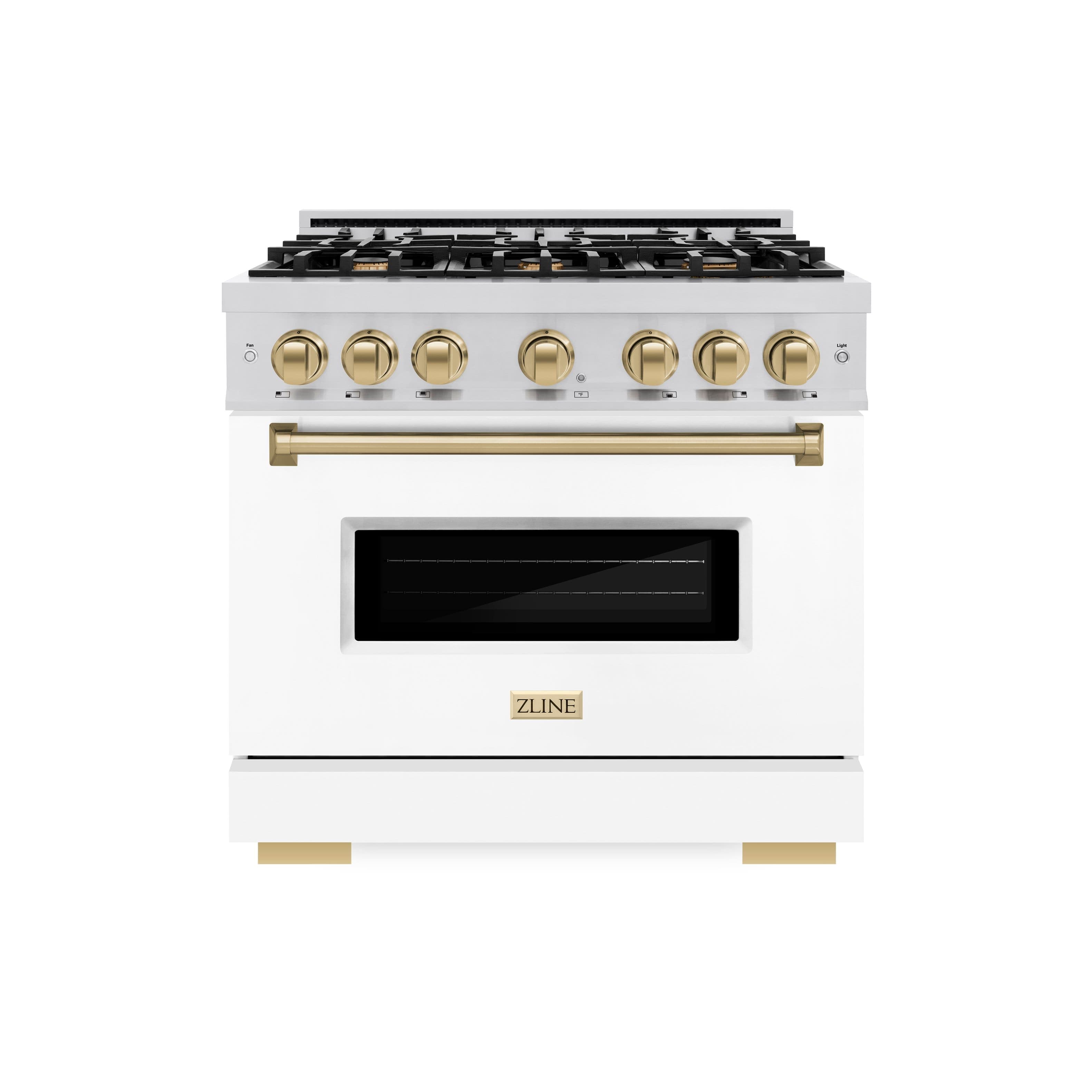 Luxury isn’t meant to be desired - it’s meant to be attainable. The ZLINE Autograph Edition 36 in. 5.2 cu. ft. Classic Gas Range with 6 Burner Cooktop and Convection Gas Oven in Stainless Steel with White Matte Door and Champagne Bronze Accents (CGRZ-WM-36-CB) combines the elegance of a hand-finished porcelain gas cooktop with 6 Italian-made auto-reignition burners, a gas convection oven with an energy-efficient cooling fan to ensure quiet operation, a beautiful white matte door with a Landscape window design, and stunning champagne bronze knobs and handle allowing you to master every meal. With a modern, timeless style and refined functionality, ZLINE Classic Gas Ranges are masterfully crafted to deliver an elevated culinary experience.