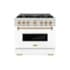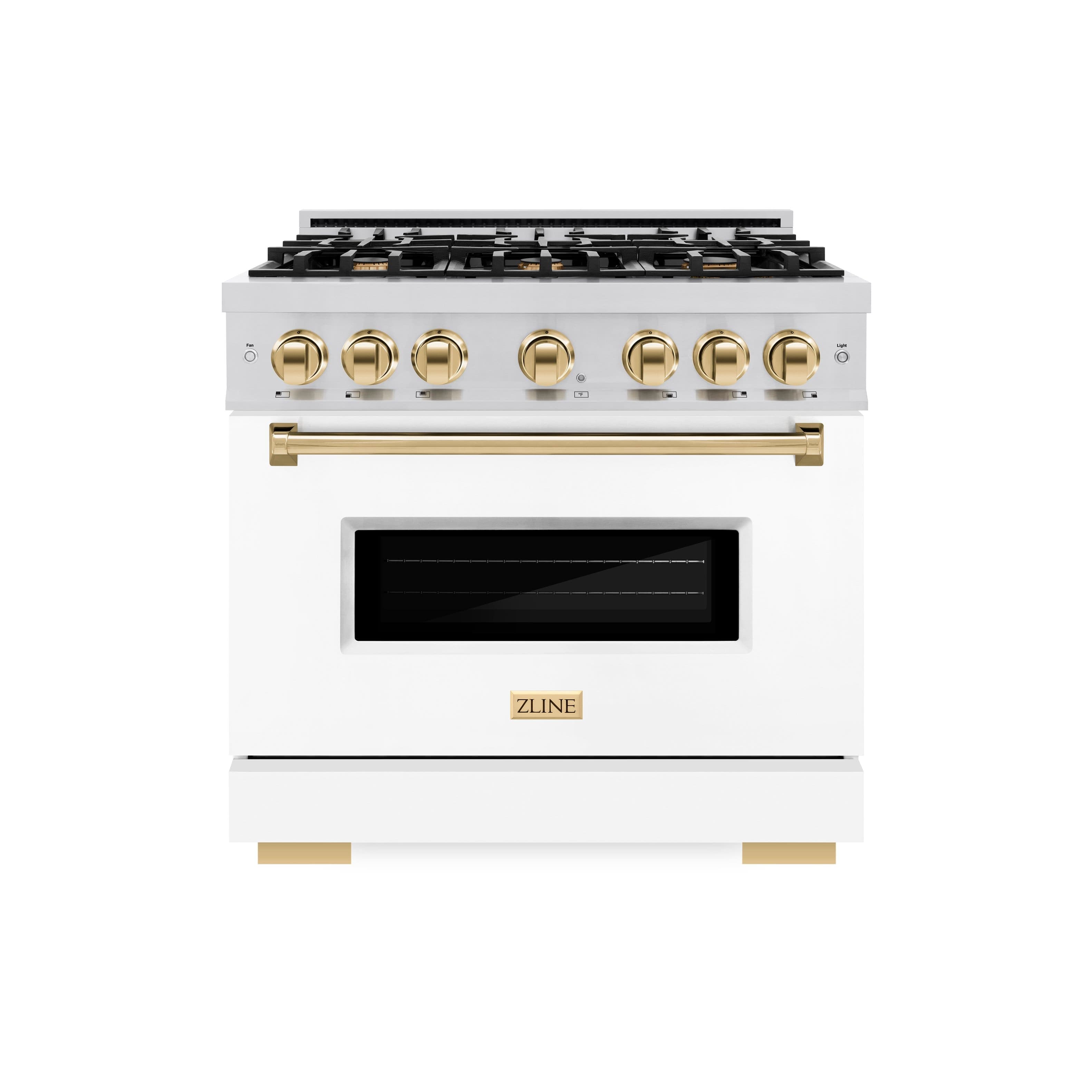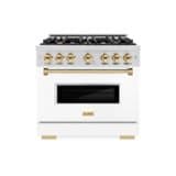 Luxury isn’t meant to be desired - it’s meant to be attainable. The ZLINE Autograph Edition 36 in. 5.2 cu. ft. Classic Gas Range with 6 Burner Cooktop and Convection Gas Oven in Stainless Steel with White Matte Door and Polished Gold Accents (CGRZ-WM-36-G) combines the elegance of a hand-finished porcelain gas cooktop with 6 Italian-made auto-reignition burners, a gas convection oven with an energy-efficient cooling fan to ensure quiet operation, a beautiful white matte door with a Landscape window design, and stunning polished gold knobs and handle allowing you to master every meal. With a modern, timeless style and refined functionality, ZLINE Classic Gas Ranges are masterfully crafted to deliver an elevated culinary experience.