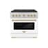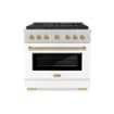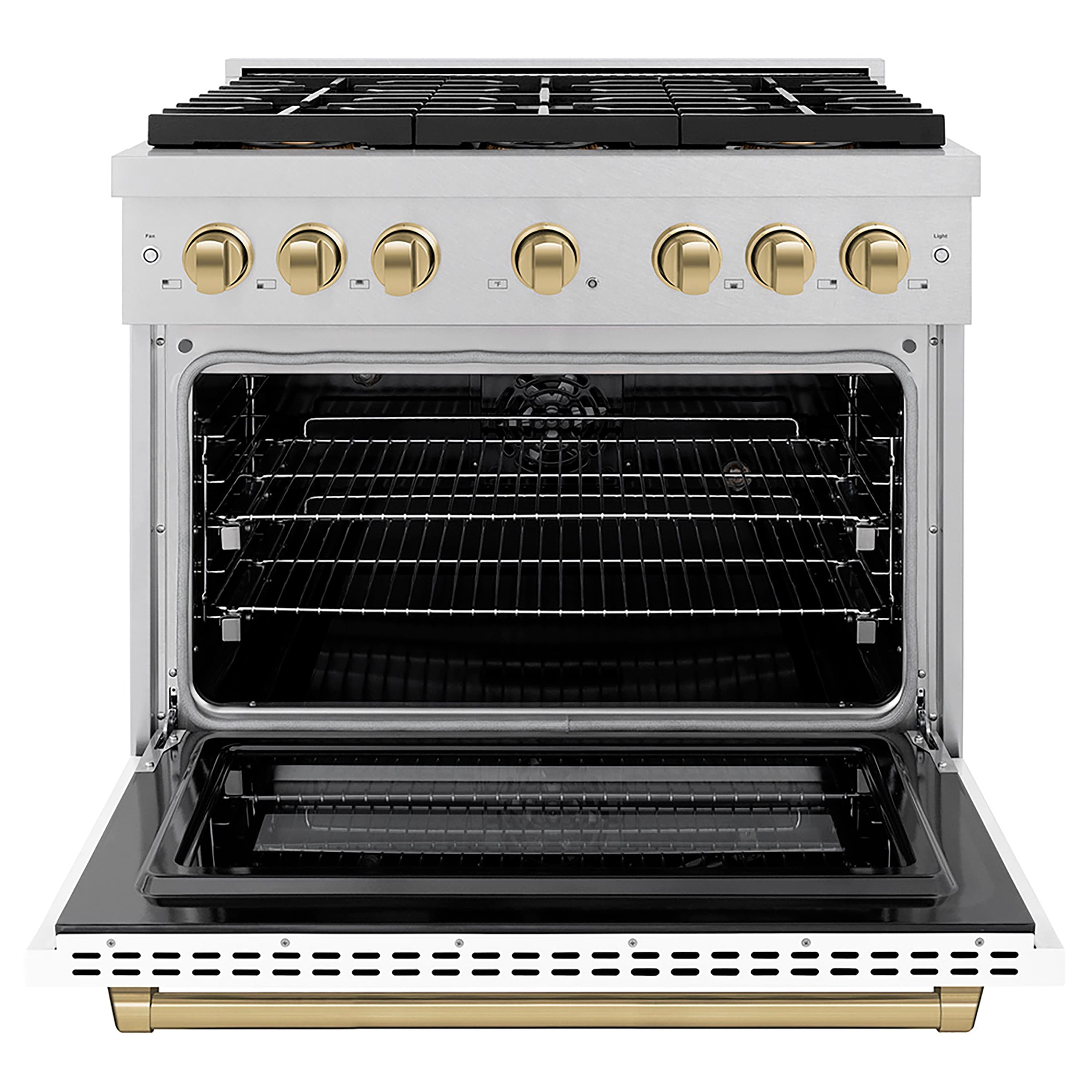ZLINE - Autograph 36 in. 5.2 cu. ft. Freestanding Paramount Dual Fuel DuoPro Range in Satin Steel w/ White & Bronze Accents - White Matte