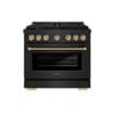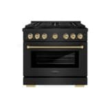 ZLINE - Autograph 36 in. 5.2 cu. ft. Freestanding Paramount Dual Fuel Range in Black Stainless Steel and Bronze Helix Handle - Black Stainless Steel