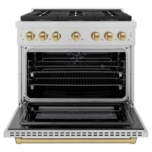 Luxury isn’t meant to be left desired—it’s meant to be attainable. The ZLINE Autograph Edition 36 in. 5.2 cu. ft. Paramount Dual Fuel Range with 6 Burner DuoPro™ Cooktop and Electric Convection Oven in Satin Stainless Steel and Champagne Bronze Accents (PSDRSZ-36-CB) features a high-powered gas cooktop with 6 hand-crafted Italian dual-ring brass burners and a versatile electric convection oven allowing you to master every meal. With ZLINE DuoPro™, every burner brings the performance you need—wherever you need it.