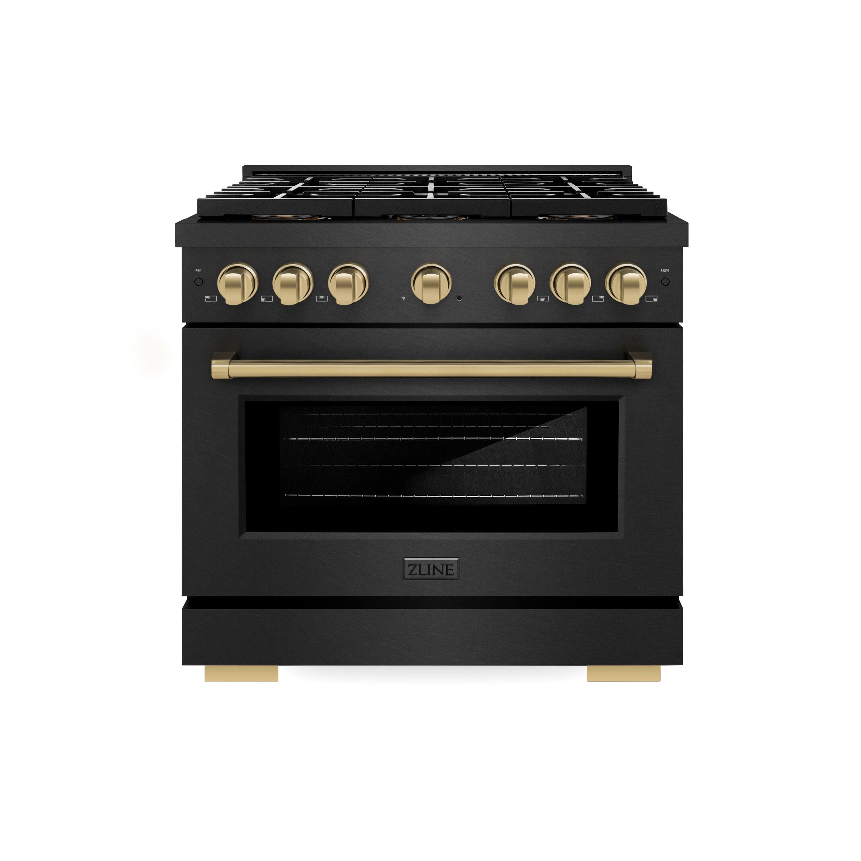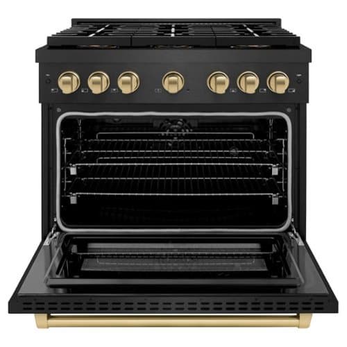 ZLINE - Autograph 36 in. 5.2 cu. ft. Freestanding Paramount DuoPro Dual Fuel Range in Black Satin Steel and Bronze Accents - Black Satin Stainless Steel