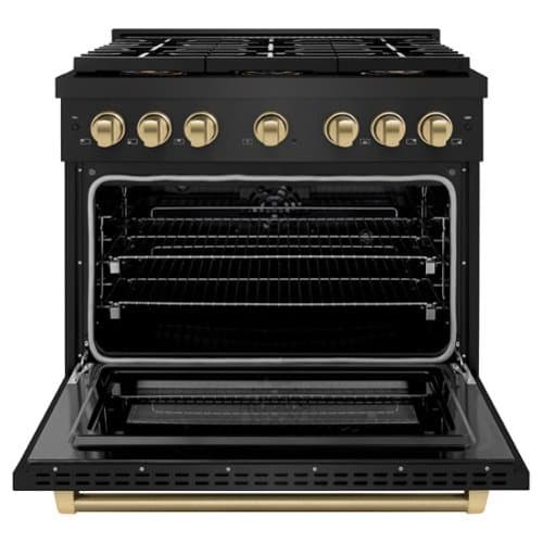 ZLINE - Autograph 36 in. 5.2 cu. ft. Freestanding Paramount DuoPro Dual Fuel Range in Black Steel with Champagne Helix Handle - Black Stainless Steel