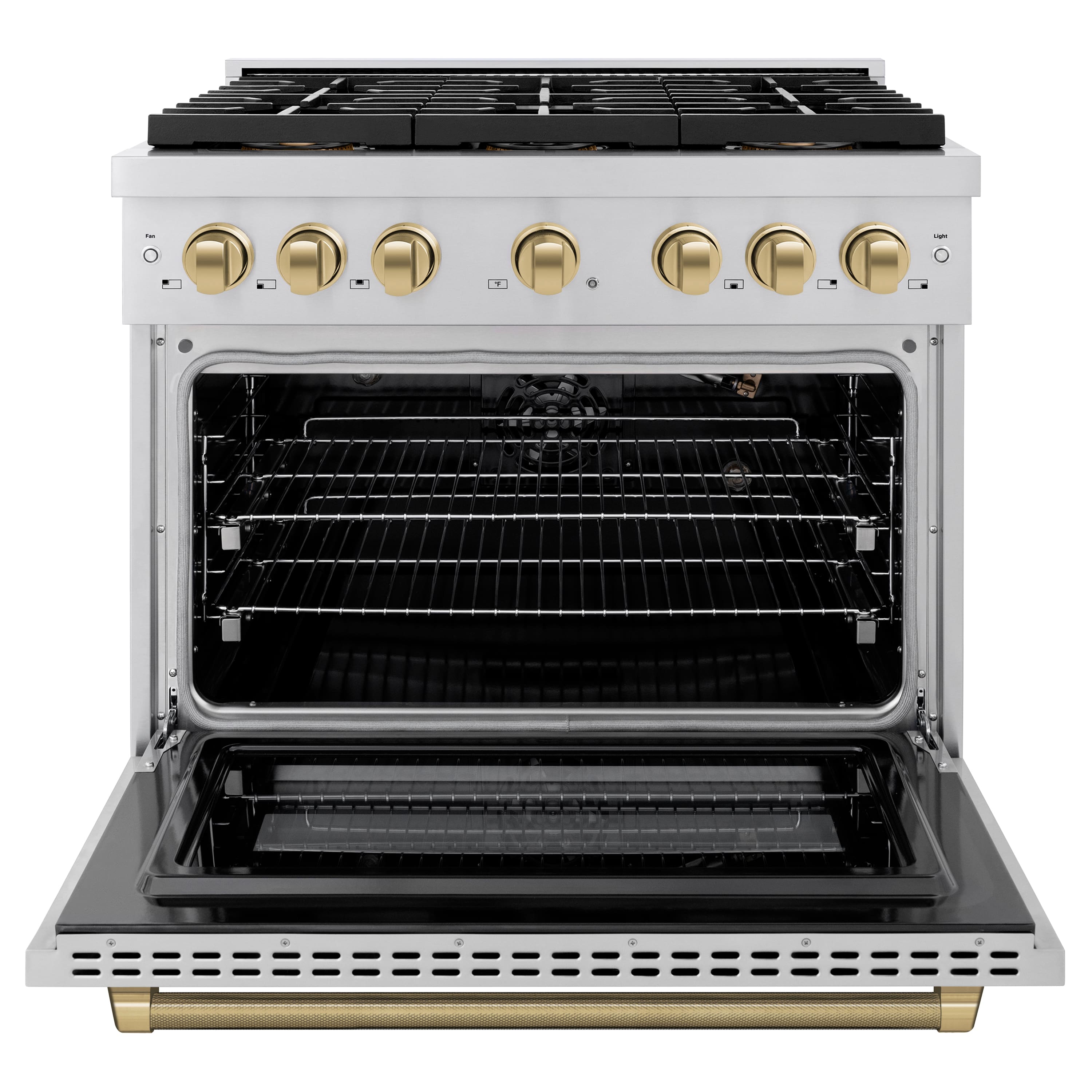 ZLINE - Autograph 36 in. 5.2 Cu. Ft. Freestanding Paramount DuoPro Gas Range in Stainless Steel with Bronze Helix Handle - Stainless Steel