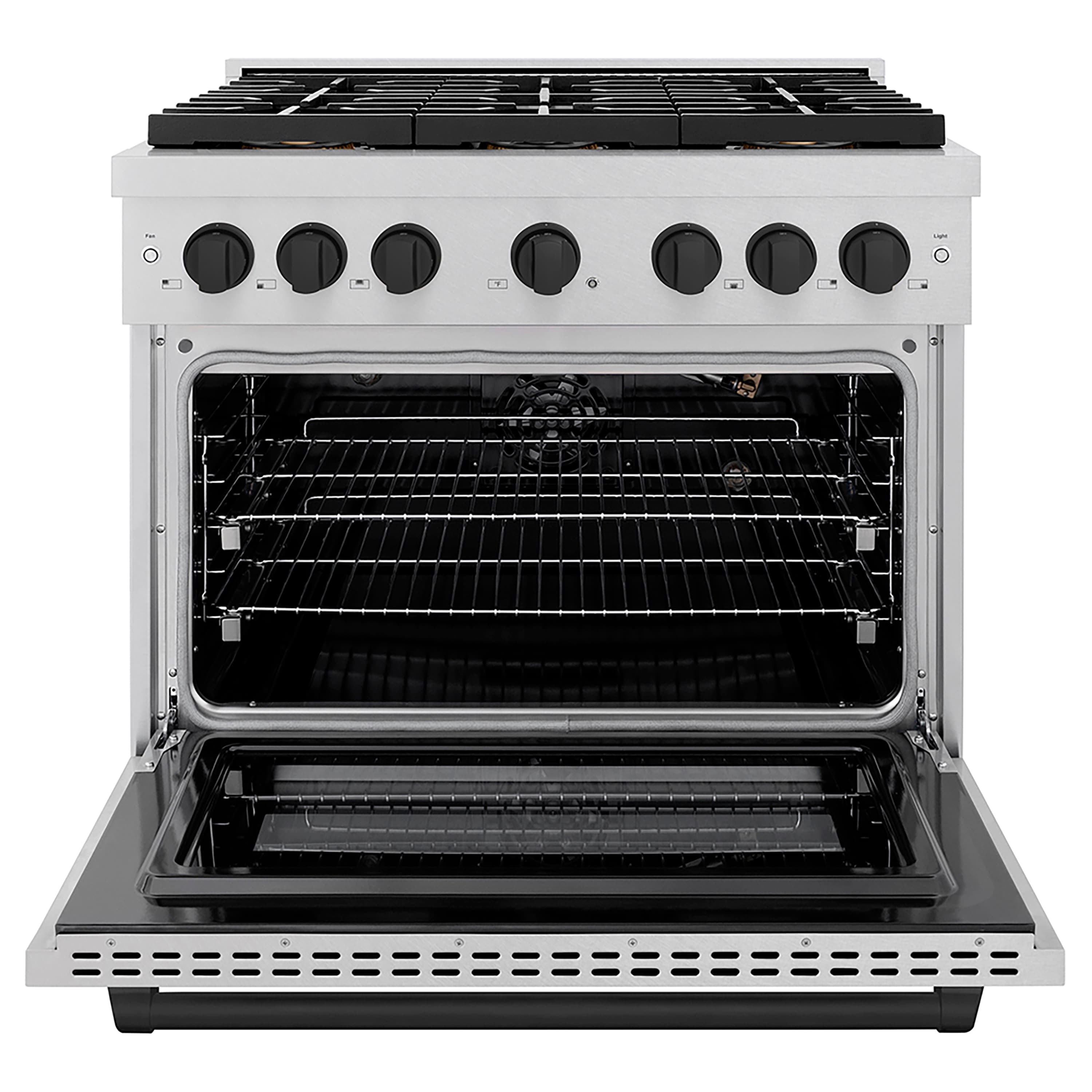 Luxury isn’t meant to be left desired—it’s meant to be attainable. The ZLINE Autograph Edition 36 in. 5.2 cu. ft. Paramount Gas Range with 6 Burner DuoPro™ Cooktop and Convection Gas Oven in Satin Stainless Steel and Matte Black Accents (PSGRSZ-36-MB) features a high-powered gas cooktop with 6 hand-crafted Italian dual-ring brass burners and a versatile gas convection oven allowing you to master every meal. With ZLINE DuoPro™, every burner brings the performance you need—wherever you need it.