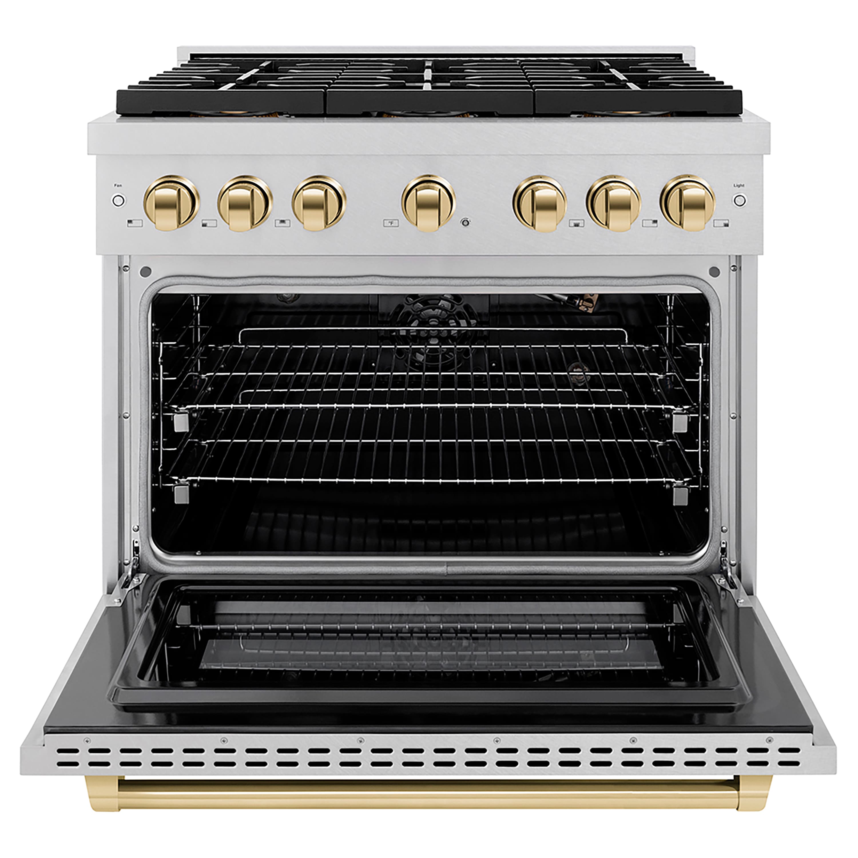 ZLINE - Autograph 36 in. 5.2 cu. ft. Freestanding Paramount Gas DuoPro Range in Satin Steel and Polished Gold Accents - Stainless Steel