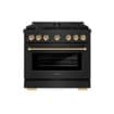 ZLINE - Autograph 36 in. 5.2 Cu. Ft. Freestanding Paramount Gas Range in Black Stainless Steel with Gold Helix Handle - Black Stainless Steel
