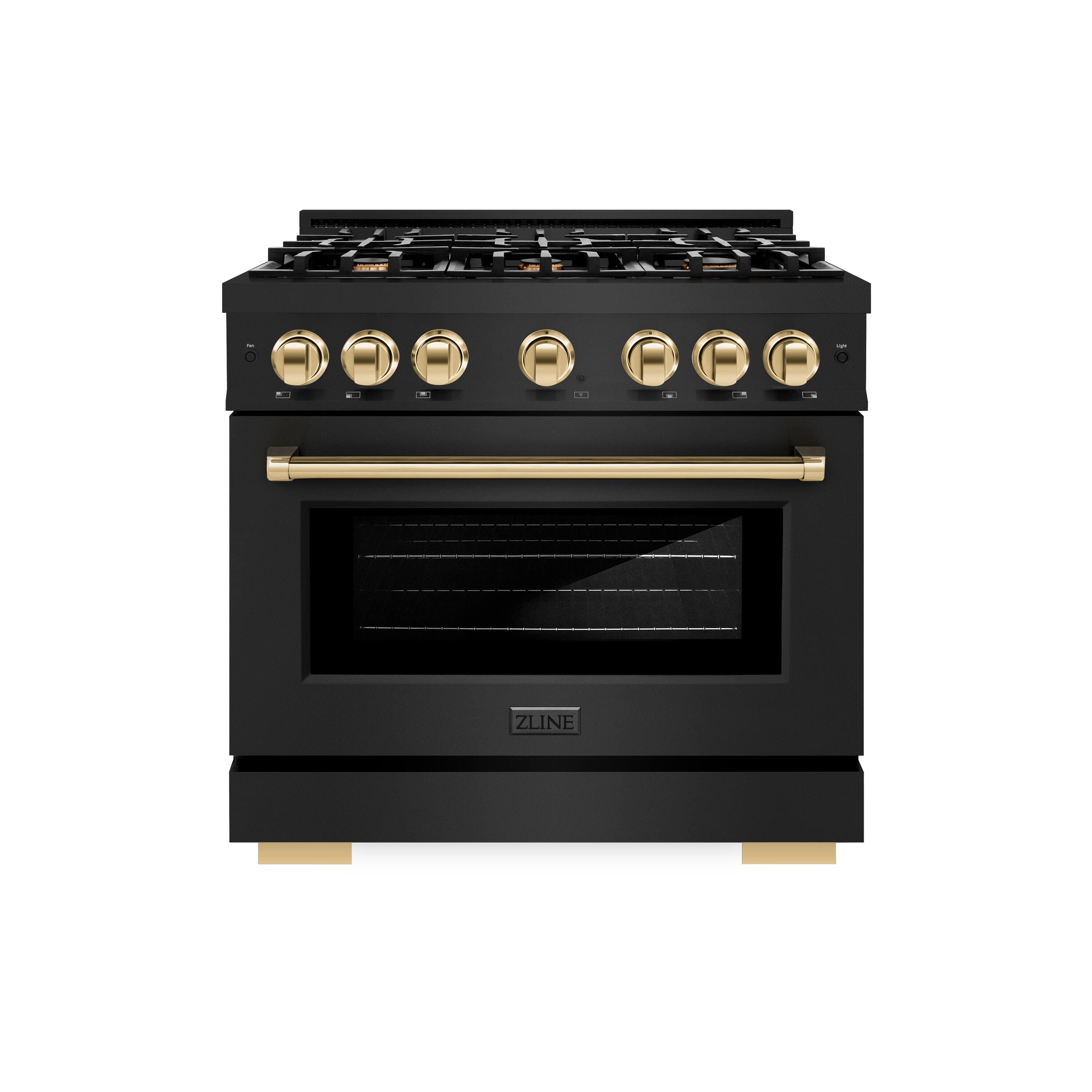 ZLINE - Autograph 36 in. 5.2 cu. ft. Freestanding Select Black Stainless Gas Range w/ 6 Burners & Gold Accents - Black Stainless Steel
