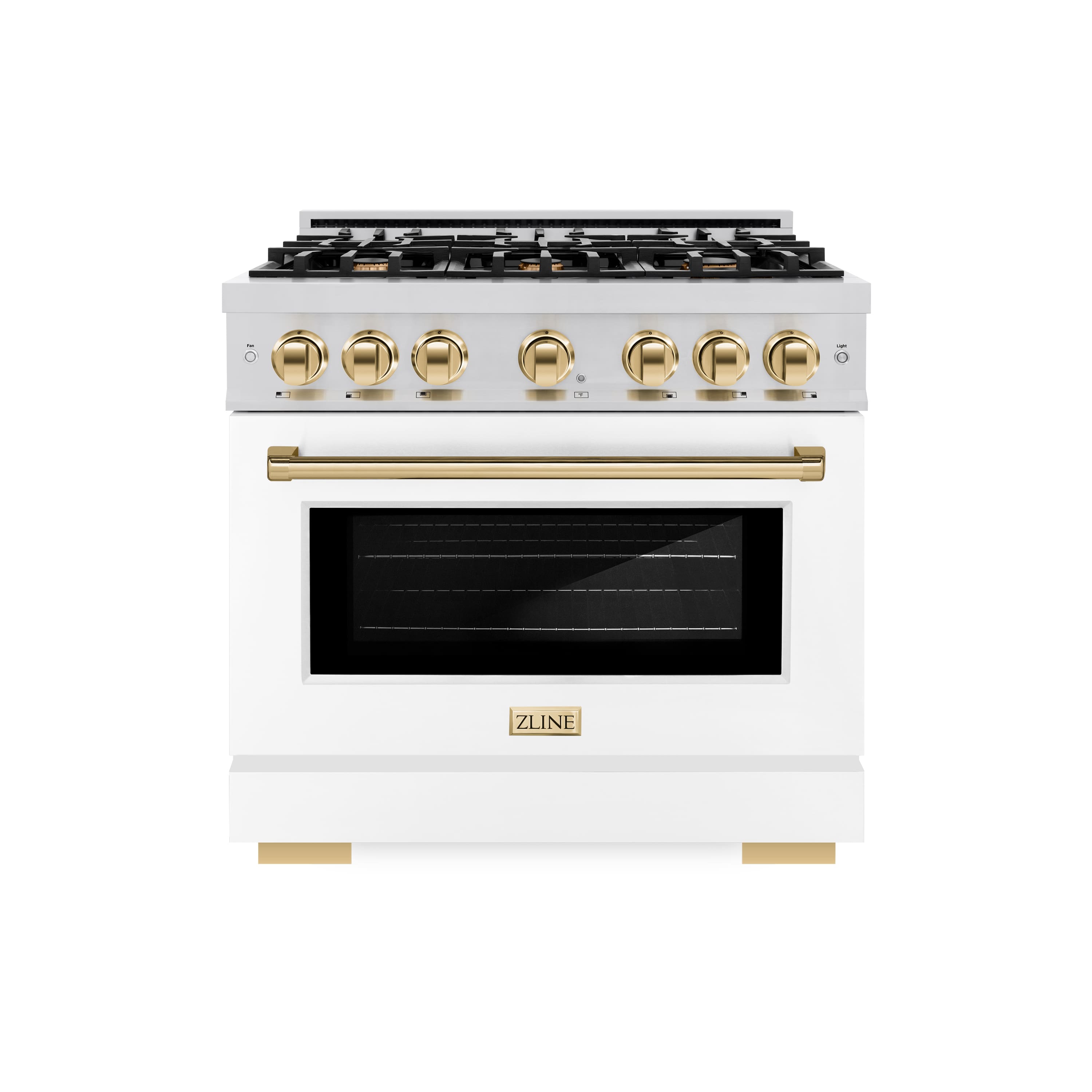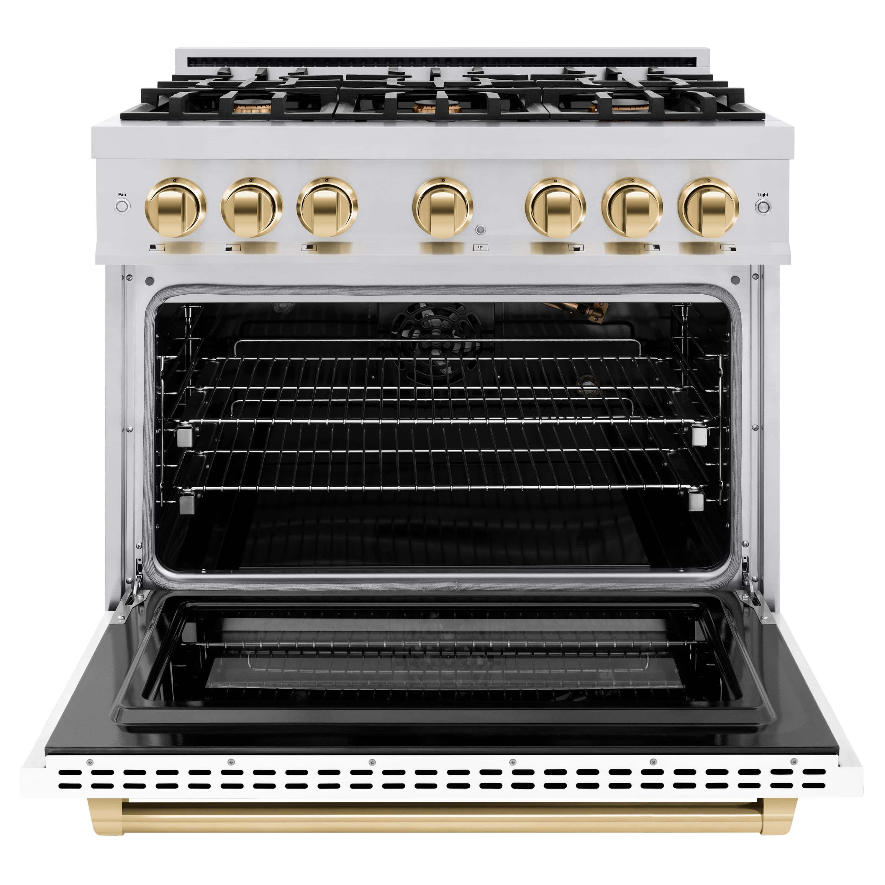 ZLINE - Autograph 36 in. 5.2 cu. ft. Freestanding Select Gas Range w/ 6 Burners & White Door w/ Gold Accents - Stainless Steel