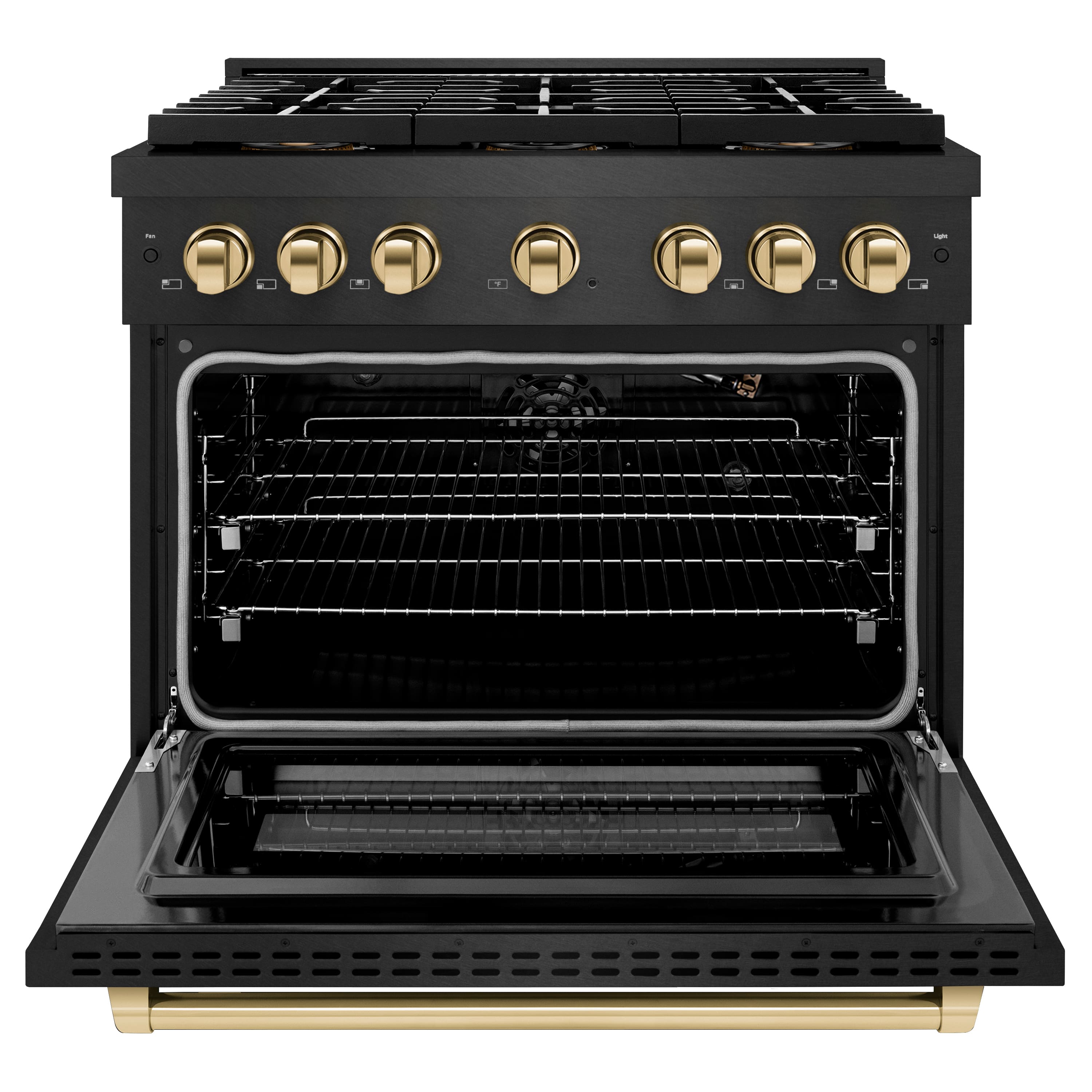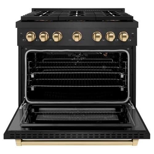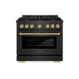 ZLINE - Autograph 36 in. 5.2 cu. ft. Manual Clean Freestanding DuoPro Gas Range in Black Satin Stainless Steel and Gold Accents - Black Satin Stainless Steel