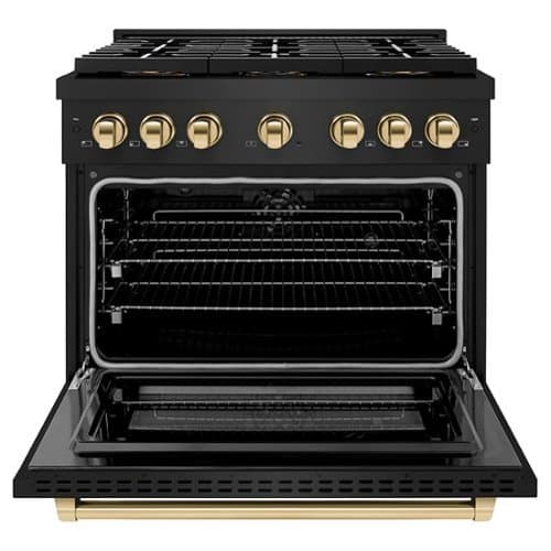 Luxury isn’t meant to be left desired—it’s meant to be attainable. The ZLINE Autograph Edition 36 in. 5.2 cu. ft. Paramount Dual Fuel Range with 6 Burner DuoPro™ Cooktop and Electric Convection Oven in Black Stainless Steel and Polished Gold Accents (PSDRBZ-36-G) features a high-powered gas cooktop with 6 hand-crafted Italian dual-ring brass burners and a versatile electric convection oven allowing you to master every meal. With ZLINE DuoPro™, every burner brings the performance you need—wherever you need it.