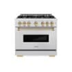 ZLINE - Autograph 36 in. Classic Dual Fuel Satin Steel Range w/ 6 Burners & Bronze Accents (CDRSZ-36-CB) - Stainless Steel