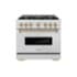 Luxury isn’t meant to be left desired — it’s meant to be attainable. The ZLINE Autograph Edition 36 in. 5.2 cu. ft. Classic Dual Fuel Range with 6 Burner Gas Cooktop and Electric Convection Oven in Satin Stainless Steel with Champagne Bronze Accents (CDRSZ-36-CB) combines the elegance of a hand-finished porcelain gas cooktop with 6 Italian-made auto-reignition burners, an electric convection oven with an energy-efficient cooling fan to ensure quiet operation, a Landscape oven door window design, and stunning champagne bronze knobs and handle allowing you to master every meal. With a modern, timeless style and refined functionality, ZLINE Classic Dual Fuel Ranges are masterfully crafted to deliver an elevated culinary experience.