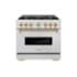 ZLINE - Autograph 36 in. Classic Dual Fuel Satin Steel Range w/ 6 Burners & Gold Accents (CDRSZ-36-G) - Stainless Steel