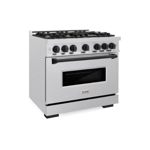 ZLINE - Autograph 36 in. Classic Satin Steel Gas Range w/ 6 Burners & Black Accents (CGRSZ-36-MB) - Stainless Steel